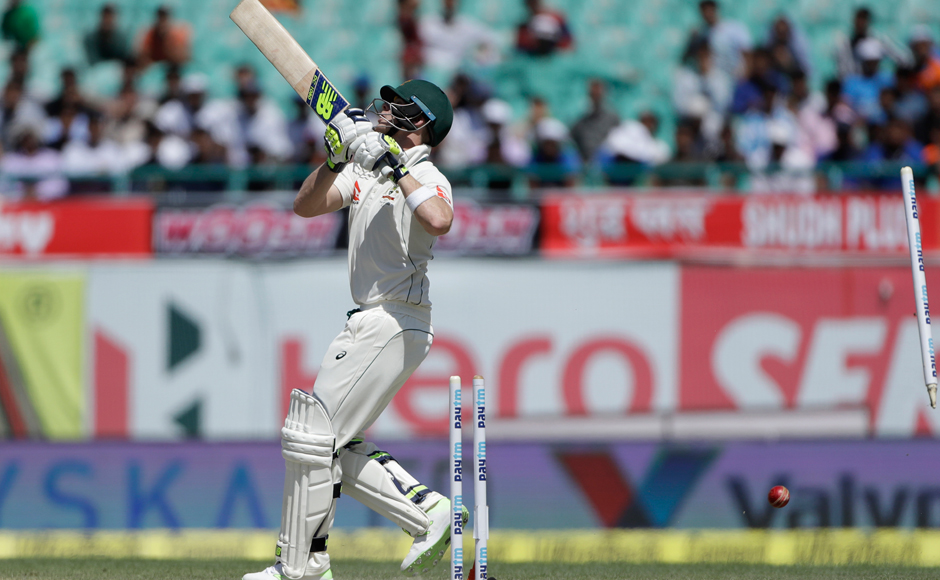 Bowled ’em! Bhuvneshwar Kumar cleaned up Australia captain Steve Smith on the third day of the fourth Test. AP