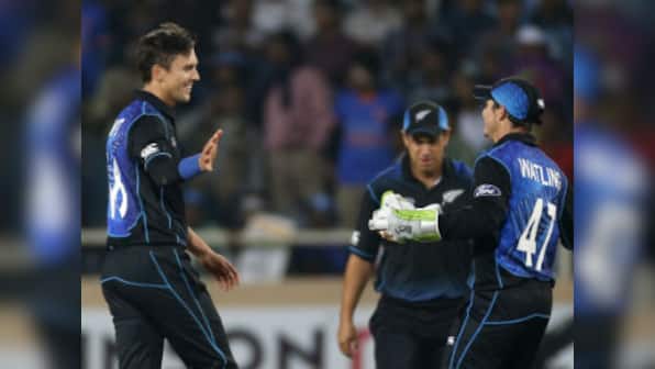 Ranchi: India paid the price for some poor shot selection as New Zealand clinched the fourth One-Day International (ODI) by 19 runs to level five-match series 2-2 in Ranchi on Wednesday. Chasing a target of 281 on a slow track, India were on course at 128 for 2 before a sudden middle-order collapse saw them lose four quick wickets as they were finally all-out for 241 in 48.4 overs. This was India’s first loss at skipper Mahendra Singh Dhoni’s home ground in all the international matches that they have played so far. India’s No 1 batsman Virat Kohli (45) and opener Ajinkya Rahane (57) added 79 runs for the second wicket, while skipper Dhoni disappointed the local fans, managing a sedate 11 off 31 balls before Jimmy Neesham cleaned him up. [caption id=“attachment_3074862” align=“alignleft” width=“380”]  Trent Boult celebrates with the New Zealand players after completing the 19-run win. AP[/caption] He played 22 dot balls on Wednesday as he has now played more than 100 dot balls in his last three ODIs. Especially against left-arm spinner Mitchell Santner (1/38), who bowled 34 dot balls in all and quite a few to Dhoni. It was Rahane’s leg before off Neesham that triggered a collapse with Dhoni following the suit. Tim Southee then dealt a telling blow by removing Manish Pandey (12) and Kedar Jadhav (0) off successive deliveries – both out to poor choice of shots. From 128/2, India slumped to 154/6 in just five overs and it became the turning point of the match. Pandey trying to clear mid-on was out when situation demanded a bit of discretion while Kedar was guilty of trying to hit across the line being adjudged plumb in-front. Hardik Pandya’s (9) inexperience also showed as he tried to hit an inside-out lofted shot despite a fielder being placed at the extra cover boundary. Axar Patel (38) and Dhawal Kulkarni (25) did try but that was never going to be enough for the ‘Men In Blue’. Southee (3/48) and Boult (2/40) were again on the money, so was Neesham (2/38) donning the third seamer’s role to perfection. The spinners gave away 102 runs in their 24 overs and bowled 70 dots which is equivalent to 11.4 overs without runs. Locked 2-2, the final one-dayer in Visakhapatnam 29 October will determine the winner of the five-match series. In pursuit of 261 on a pitch with variable bounce, India started off positively with Rahane returning to form in his 57 from 70 balls that had five fours and a six. He along with Kohli laid the foundation before the chase went disarray. Under pressure, Dhoni was slow off the blocks before Neesham accounted for both of them in successive overs. Once Pandey and Kedar were gone, India required 94 off 84 balls. Axar and Amit Mishra (14) revived their hopes in a 38-partnership from 37 balls. But Mishra was run out after a poor judgment, as it was all but over for India. The match was interestingly poised for both the teams till Neesham got into the act. The medium pacer had Rahane plumb in the second ball of his new spell. The Indian opener had done all the hard work and batted beautifully on a tricky track where the odd ball stayed low but his dismissal with more than 100 shy of the target put the spotlight on the local hero Dhoni. The Indian limited-overs skipper looked under pressure and struggled to time the ball on the difficult pitch before being cleaned up by Neesham in the next over. Practically-speaking, the chase was as good as over for the Kohli-dependent India, but the crowd did not mind anticipating a Dhoni special in his possible last appearance. Amid chants of ‘Dhoni, Dhoni’ reverberating the stands, the Indian skipper made an entry with his casual gait and he took his time waiting for the perfect ball to flourish. But the nature of the pitch let down Dhoni on more than one occasions as he had some mis-hits, and survived on till he completely missed the line to be bowled by Neesham. At 135/4 in the 30th over, India needed a Kohli-like innings but there was no one to carry his bat through. Pandey looked fluent with two elegant boundaries before Tom Latham timed his jump to perfection at mid-on to cut short his innings, as India lost Jadhav next ball to leave the chase in total disarray. Earlier, Martin Guptill struck a fluent half-century but New Zealand failed to seize the momentum as Indian spinners did well to restrict them to a modest 260 for 7. Opting to bat, New Zealand were off to their best start on the tour with Guptill slamming an 84-ball-72 studded with 12 boundaries. Along with Tom Latham (39 from 40 balls; 4x4) he laid a solid foundation putting together 96 from 93 balls for the opening wicket before left-arm spinner Axar Patel (1/38) gave the much-needed breakthrough after a lacklustre performance by the seamers. Guptill looked in full flow and completed his 31st ODI fifty from 56 balls, but Hardik Pandya ended the threat inducing a thin edge of the Kiwi opener midway into their innings. With 184/2 after 35 overs and a set Kane Williamson in the middle, New Zealand were still in sight of 300. But Amit Mishra (2/41) took the crucial wickets of Williamson (41 from 59 balls; 4x4) and Jimmy Neesham (6) in successive overs to derail the visitors gameplan. Williamson was foxed by the bounce and took an edge to Dhoni, while Neesham’s mis-time found Kohli at cover as India did well to arrest their progress. Patel returned with tidy figures of 1 for 38 from his quota, while part-time off-spinner Kedar Jadhav returned wicketless but conceded just 27 runs from his eight overs to put brakes on New Zealand’s brisk start. Kiwi skipper Williamson not only read the coin rightly for the first time in the series after three Tests and three ODIs, but he also read the pitch perfectly and opted to bat on a slow pitch with variable bounce. Having started off with a maiden, India courtesy Kulkarni leaked 16 runs in the second over, a trend that continued till the powerplay with Guptill and Latham batting with ease against some l