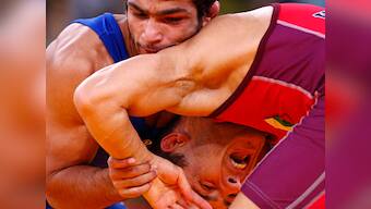 File photo of Amit Kumar. Reuters[/caption] In the quarterfinal round, he defeated US wrestler Agelo Alesmo Escobedo 6-0 and qualified for semi-final. Again in the semi-final round, he defeated Turkey’s wrestler Sezar Akgul 8-0 and made it to the final. Unfortunately, in the final, he lost to a close bout to Iran’s Rahimi Hassan Farma 1-2 points and missed out on the gold in 55 Kg. of Free Style. He had to be content with a silver medal. The other 2 wrestlers viz. Arun, 66 Kg. Free Style & Satyavart Kadayan, 96 Kg. Free Style lost their bouts and even could not qualify for the bronze medal bout. Sushil Kumar was due to participate in the 66kg class, but failed to take to the mat due to fitness issues and was replaced by Arun Kumar. The competition in 60 Kg., 74 Kg., 84 Kg. weight categories of Free Style will be held today.
