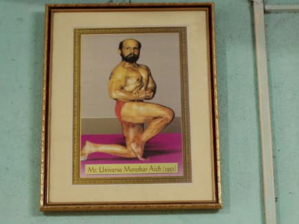 Editor’s Note: This copy was first published in 2012 on the occasion of Manohar Aich’s 100th birthday. It is being updated in light of Aich’s passing in Kolkata on Sunday. Manohar Aich towers over the lane where he lives in Kolkata. At the head of the street there’s a big hoarding with an old black and white photograph of him, flexing in a posing strap, looking down on the usual clutter of tea stalls, sabziwallahs and auto-rickshaws. “Towers” is an odd word to use for Manohar Aich. India’s first Mr. Universe was 4’11” at his peak – a pocket Hercules. He might have shrunk an inch or two now. Manohar Aich turned 100 this year. “They took me in a procession, the TV came and took interviews. The government gave me a cheque,” says the dimunitive bodybuilder. He claims it’s the first time the government has given him a cash award since he won his grand title in 1952. How much did they give I ask. “I don’t know,” he shrugs “Ask them. They keep track of all that now.” He gestures at his family milling around the small one-storey house. [caption id=“attachment_306602” align=“alignleft” width=“380”]  Manohar Aich at his home in Calcutta. The 100 year old worked out at his gym well into his 90s.[/caption] One lakh, his grandson replies. Innards for two annas This should be Manohar Aich’s season in the sun. He has lived to see the vindication of his great passion – the worship of the body. In his day it was the lonely obsession of a few. Now it has become mainstream. It’s been a long time coming. In 1952, the Mr. Universe title made him famous. But it brought no sponsorships, ad-deals, or gym franchises. “I remember going to his house,” says Kshitish Chatterjee, Mr. India 1966 and one of his closest disciples. “His wife would get _naari bhuri (_innards) for two annas and fry them up. He never did the high protein diet. He never had the money. This was the state of Mr. Universe.” “My father used to show his muscle in the circus,” remembers Manohar’s son Bishnu. “He would lift 600 pounds on his shoulders. That’s how he earned money.” He also asked crowds to shout out letters of the English alphabet during his muscle shows. Then he would bend six-inch nails into those shapes with his bare hands. He has sold green coconuts at Sealdah train station, worked clerical office jobs, and been a subway conductor in London. He signed up as a paratrooper for the RAF for a ten-rupee salary increment after his first daughter was born and played the khol (drums) in kirtan groups. All along he kept pumping iron. Now it seems the world has finally caught up with him. Fitness can actually be a profession. Gyms are everywhere – dream gyms, no-machine gyms, fitness centres (separate floors for ladies and gents), multigyms. Even his own son runs one – the Bishnu Manohar Aich’s Multigym and Fitness Centre. The multigym vs the single minded bodybuilder But Aich, the elder, seems a lonely man. “I never thought of gyms as a business. I did it because I had the _ichhe (_desire),” he says. “Now it is all wrong. They just want quick results. Is that possible?” He is not even very interested in his son’s multigym. “(My father) doesn’t like it. He only likes big muscles,” says Bishnu. “Normal life does not require big muscle. But people have to live in the world with fitness.” Bishnu was a bodybuilder when he was 22. He has pictures of himself on the wall, posing with bulging muscles. “But I found this cannot be my profession. It is not financially sound. People do not have 4 to 6 hours a day to build muscles.” He points to picture of a sari-clad woman on the wall. “That is my creation. She came to me at 100 Kg. She came down to 65 kg. Natural method – diet control, calorie burning, strengthening the muscle.” His father didn’t particularly approve of women working out. Chatterjee remembers him advising a woman whose three daughters wanted to work out that they should just dismiss the servants and the girls could pick up their chores – one could grind the masalas, one could mop the floors, one could wash the clothes. Three floors down from Bishnu is what remains of his father’s world. At the akhara where Manohar Aich worked out well into his nineties the clang of raw iron weights replaces the whirr of stationary bicycles. The floor is red brick dust. A faded poster of Arnold Schwarzenegger from his Conan days shares column space with Bajrang Bali. Teenaged boys, mostly shirtless, grunt as they pump iron and do push-ups, sweat beading their brows. There is no air-conditioning. “I want to be fit like Manohar-dadu (grandpa),” says Sumon Mondal. He’s 16 and he has been coming to the akhara for a couple of months. “Everyone is building the body. So I wanted to as well.” Sumon says other dadas show him the ropes. Other than that they are on their own. It’s certainly a very different world from the multigyms where uniformed trainers outnumber the machines, hovering over their clients in their Puma tracksuits and muscle-tees autographed by John Abraham. Those gyms cost thousands of rupees a month. Manohar Aich’s akhara costs Rs 60 with a joining fee of Rs 120. [caption id=“attachment_306612” align=“alignleft” width=“380”]  It’s certainly a very different world from the multigyms where uniformed trainers outnumber the machines. Bishan Samaddar[/caption] Affordable as they might be, they belong to a different culture that’s fallen out of favour with urban middle class India. “You go to gyms with air conditioning,” Chatterjee tells me. “That makes no sense. The point of working out is to get the heart pumping to raise the body temperature.” Gyms are about selling – personal trainer packages, massages, supplements, nutrition bars. They also want to give their clients quick results whether they want to build muscle or lose inches. “Body building is not Nescafe,” says Chatterjee. “Put i