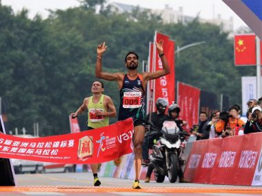 File photo of Gopi Thonakal. Image courtesy: Twitter/@afiindia[/caption] Nitendra Singh Rawat was second in 2:24:55 while Bahadur Singh Dhoni took the bronze in 2:24:56. The 4:30 am start time of the race at Jawaharlal Nehru Stadium, flagged off by cricket icon Sachin Tendulkar, gave the runners an ideal temperature of just over 15 degree Celsius — around 18 degree when the race ended — and Gopi was able to better his earlier best of 2:15:25 (clocked during 2016 Olympics) by nine seconds. The 29-year-old Gopi’s effort was, however, well outside the 2:12:50 qualification standard of the AFI for the Gold Coast Commonwealth Games. He had won the title last year in 2:15:37. Gopi had won the Asian Marathon title in China in November last year with a time of 2:15:48. In the women’s event also, Monika Athare retained her title, clocking 2:43:46, ahead of last edition silver medallist Jyoti Gawte (2:50:12) and Monica Raut (2:55:02). Around 65 elite Indian athletes took part in the full marathon of 42.195km.