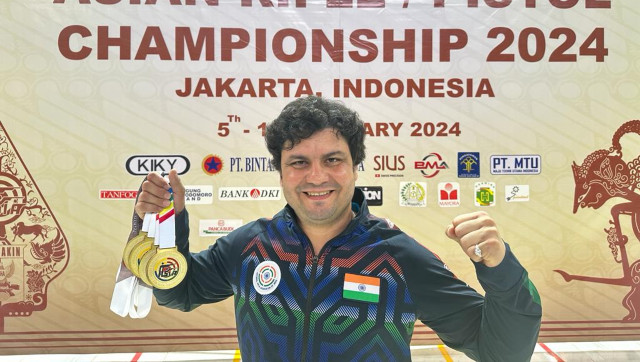 Jakarta: Indian shooters’ gold rush continued in the Asia Olympic Qualifiers with Yogesh Singh winning the top prize in individual as well as team event of the men’s 25m centre fire pistol competition in Jakarta on Monday. Yogesh claimed the individual gold medal after shooting 573, finishing ahead of silver winner Muad Al Balushi of Oman (570) and Indonesia’s Anang Yulianto (567). The other two Indian participants in the event, Pankaj Yadav (567) and Akshay Jain (564), has ended fourth and sixth respectively.