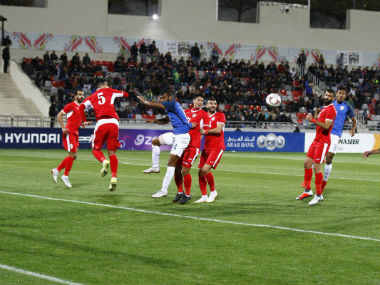 Amman: India went down 1-2 to Jordan in an international football friendly Saturday, an improved second-half performance failing to salvage a draw for the visitors. [caption id=“attachment_5570151” align=“alignleft” width=“380”] The game against the 112th ranked Jordan was in preparation for the 2019 AFC Asian Cup.[/caption] This was a climbdown for Stephen Constantine’s men weeks after holding World Cup-winning coach Marcello Lippi’s higher-ranked China to a goalless stalemate. The 97th ranked India, though, were without their talismanic striker Sunil Chhetri, who was ruled out of the game due to an injury. The journey to the Jordan capital from New Delhi was also far from smooth for the Indian players, many of whom were left stranded at Kuwait City airport as flash floods in this part of the world disturbed the flight schedule. Goalkeeper cum captain Amer Shafi put Jordan ahead with a free goal in the 25th minute. Thanks to the howler from India custodian Gurpreet Singh Sandhu, who failed to read the bounce of his counterpart’s shot from the other end of the pitch, Jordan led 1-0 at the break. Ehsan Haddad consolidated Jordan’s position and made it 2-0 with his 58th-minute strike. Coming on as a substitute for Jackiechand Singh, debutant Nishu Kumar pulled one back for the visitors when he found the net from a close range in the 61st minute. That was only his second touch of the game. While he goofed up to concede the game’s first goal at the King Abdullah International Stadium, Gurpreet also saved a penalty in the 10th minute. India’s number one goalkeeper dived to his right to deny Baniatiyeh. While India upped their game after the break, the first half action was eventful, as it included a missed penalty, one booking and a howler by India captain Sandhu. The game against the 112th ranked Jordan was in preparation for the 2019 AFC Asian Cup.