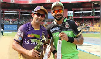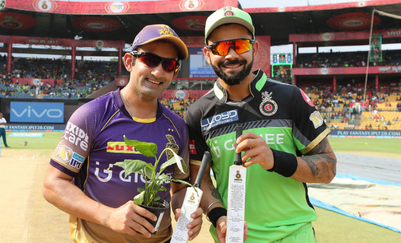 TOSS: Kolkata Knight Riders win the toss, and captain Gautam Gambhir elects to field first. Royal Challengers Bangalore skipper Virat Kohli says he would have preferred batting first anyway.
