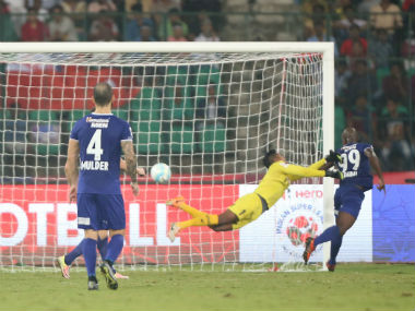 It was a perfect performance of Dr Jekyll and Mr Hyde from Chennaiyin FC as their attack worked sincerely and assiduously to take the lead thrice. The defence along with the goalkeeper were the antidote for Northeast United FC as they conceded thrice, the last one all but spelling doom for Chennaiyin’s campaign this Indian Super League (ISL). Valiant Attack With goals coming at a premium, when compared to the last campaign, it was interesting to see who Chennaiyin will start with in this must-win game. Dudu Omagbemi in place of the timid Jayesh Rane seemed a no-brainer. Jerry Lalrinzuala, as expected, came back after his game of rest. Bernard Mendy, who was suffering a fever according to manager Marco Materazzi, made way for the youngster. The only other change from the previous game was Siam Hanghal, last seen in the disheartening loss to Delhi Dynamos, who came in for Harmanjyot Singh Khabra. [caption id=“attachment_3126430” align=“alignleft” width=“380”]  Dudu Omagbemi scores the second goal for Chennaiyin FC against Northeast United. ISL[/caption] The last of the changes proved a masterstroke, as the young Hanghal was the perennial outlet for the attack dribbling his way in and causing disarray in the Northeast defence. Chennaiyin were literally camped in the opponent’s half for the most part with a possession of 60 percent. It was the young Indian, hailing from Manipur, who masterminded the first goal. His teasing run down the right showing ample skills had the Northeast defence mesmerised. He waited for the perefect moment to slip the ball to the overlapping Mehrajuddin Wadoo, whose perfect first time cross found Dudu, who made no mistake. David Succi, though not on the scoresheet, played an important role as well. His enthusiasm to have the ball saw him drop deep often, and it was one such occasion that lead to the second goal. He held up play well in the left flank and then released Jerry Lalrinzuala into ample space, with time at hand. Jerry’s low cutback was brilliantly finished by Dudu with a neat little flick. At the stroke of half time it was with a spring in the step that Chennaiyin headed back to the dressing room. The second equaliser came soon into the second half and the game seemed to threaten to end in a draw, when not for the first time, manager Marco Materazzi turned to Bernard Mendy in the 75th minute. The captain in the right wing was full of energy and soon the Northeast goal was literally at siege with a series of corners and throw-ins. The third goal seemed impending and it came from the substitute’s run on the right, Raphael Augusto having the vision to send Mendy free this time. Mendy’s marauding run ended in a low cross that was actually was missed by Dudu, but the hapless Rehensh (on for the injured goalkeeper Subrata Paul), could only deflect the cross on to the sprawled Dudu. The ball took the final touch from the latter and trickled past the goal line. If there was one blemish from the attack, it was towards the end, when happy with a one goal lead, Raphael Augusto and company, decided to run down the time rather than go for the killer goal. In Marco’s own words “I regret us not going for the fourth goal as Raphael [Augusto] was dribbling and trying to get past five players, he could have given a long ball to [Bernard] Mendy but as I say this is football and there is not much we can do about it now. " Static Defence While the Chennaiyin attack was taking its task seriously, the defence was guilty of switching off in the most inappropriate of moments. The signs were seen early in the tenth minute as a brilliant passing move from the Northeast midfield caught the Chennaiyin defenders unawares and only a last ditch deflection saving the blushes for the home team. Northeast looked dangerous on the counter with the pace of Nicolas Velez clearly causing havoc. It came as no surprise after the first goal that Velez was the scorer of the equaliser. Romaric (Koffi Ndri) and Didier Zakora were pulling the strings in the midfield for Northeast and Dider’s ball dummied by Romaric found Velez’s incisive run. Velez still had a lot to do with the Chennaiyin defence in front of him, but he simply ran unopposed into the area and unleashed a powerful strike to the top left corner with the entire defence and goalkeeper watching on. Zakeer Mundampara has been in the screening midfield role for Chennaiyin in the past few games. It was important for him to make the tackles and pass quickly and accurately. But with him deciding to dribble the ball, the Northeast midfielders took advantage quickly with ball played to the right flank. The situation could still have been salvaged when the cross came in. But Eli Sabia’s attempt to trap the ball than clearing first time proved costly as the ball fell neatly to Nicolas Velez. His shot was straight at Karanjit and the goalkeeper added to Chennaiyin’s woes deflecting the ball onto the goal. With the lead taken the third time, and with the past experience showing the vulnerability to late equalisers, Chennaiyin failed to learn from their mistakes. After Dudu’s hat trick, around the 88th minute, the ball ran out of play near the dugout. Marco Materazzi was there when first a ball boy coming forward was slowed down by the manager. Then Nicolas Velez, who retrieved the ball that actually went out threw it to Wadoo. The latter needlessly headed it out, incensing Velez further. Velez then pushed the ball hardly on to Wadoo’s chest who dramatised the same with a fall. This quickly turned ugly as Koffi Ndri along with the two already involved players were booked. Most Indians believe in ‘karma’ and soon it delivered the final judgement in a cruel fashion. Eder Monterio had come on for Dudu Omagbemi in injury time to play out the final few minutes. He, in fact, made a goalline block in the dying minutes to deny Northeast United. But in spite of five defenders and almost the entire attack protecting the