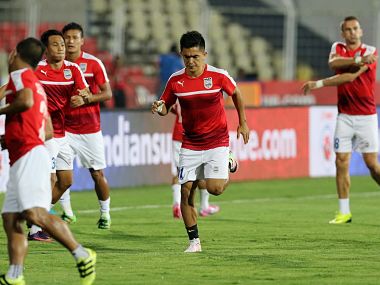 Mumbai City FC’s hopes will rest a lot on Sunil Chhetri in Diego Forlan’s absence. ISL[/caption] While a one-goal deficit wasn’t something Mumbai were hoping to take back from the game, what could hurt them most had nothing to do with the five goals that were scored. Mumbai’s inspirational leader and marquee player Diego Forlan was sent off after getting two yellow cards in the game, thereby ruling him out of the second leg in Mumbai on Tuesday. More than his five goals for the side, it was his presence that made a real difference for Mumbai as he held their attack together and every attack seemed to go through him. Mumbai’s results without the Uruguayan superstar doesn’t make for a great reading and that, along with the one-goal deficit after the first leg of the semi-final, makes the Atletico the favourites to reach the final in Kochi. Mumbai have failed to win a single game out of the three that they went in without the services of Forlan, which includes the 1-1 draw with Atletico in Mumbai earlier. A repeat of that result will be enough for the visitors to make their second final in three years. Another fact that works in favour of Atletico is their ability to avoid defeats. In the 15 matches they have played this season, Jose Molina’s men have lost just twice, drawn eight times and won on five occasions. Both those defeats have been by a single goal margin and a similar result after 120 minutes in the second leg of the semi-final will lead to penalties. Mumbai, though, would be drawing confidence from the fact that one of those defeats for Atletico had come against them. Molina, however, is refusing to dwell on the past and is confident of his side’s ability to produce the goods in the present. “We have lost just two matches and that’s good. To lose only twice in 15 matches is something really good,” Molina said at the pre-match press conference. “But tomorrow is a different match. What we did in the past is what we did in the past. If we go to the final it will be because we would have played a good match on Tuesday, not because what we did before. I live in the present, not in the past. The past is the past, we will try to fight tomorrow for 90 minutes, try to win, if we can’t win, try to draw because with a draw we will be in the final in Kochi,” the former Barcelona assistant coach added. While Atletico would be tempted to sit back and play for a draw, Molina suggested his side won’t be altering their approach despite the advantage his team enjoys. “If we have spaces, we will try to score, of course. But our mentality right now is the same as the first leg. We are going to try to win the match tomorrow like we did in Kolkata,” Molina said. “We will try to do the same. Good defence, with intensity, good press, keep the ball, move the ball fast, try to reach the opponent box and score goals,” he added. Mumbai coach Alexandre Guimaraes, who saw his side concede three goals in a match for just the second time this season, felt his side must show more intensity for a game of such magnitude as a part of a few things his team must do better from the first leg. “We have some things to resolve. The first thing is about intensity. I was talking with the players the day before that in these kind of games you have to play with a different intensity, not just physical, but also mental,” Guimaraes said ahead of the second leg of the semi-final. The Costa Rican also warned his team against “committing suicide” by losing their organisation while trying to chase the game. “We know we have to play very smart because the situation is not a situation where (we) have to go all out and commit suicide because it’s just one goal – the difference,” he said. “We have to play better than we played (in the) last game and I still believe, like I said after the game, that we are still alive. We have our chance and we will fight as hard as we can to get to the final,” Guimaraes added. It will be interesting to see how Mumbai line up in Forlan’s absence. Sony Norde seems the most likely candidate to replace the influential Uruguayan. The Haitian particularly impressed in Mumbai’s 1-0 win over Atletico in October and Mumbai supporters will be hoping for a similar show from Norde who can be absolutely unplayable on his day. The front quartet could comprise of Sunil Chhetri, Matias Defederico, Cafu and Norde, but it remains unclear which player will play in what position until the kick-off. This unpredictability could work in the hosts’ favour as it will keep Atletico guessing. The rest of the Mumbai team that has been so consistent pick themselves and their rearguard will be hoping to get their solidity back for the crucial second leg of the semi-final. Guimaraes felt it was difficult to size up the effects of Forlan’s absence before the game, while portraying faith in those who would play in his place. “Everyone is motivated, excited and the ones who are going to play in his place, I don’t have any doubt that they will do the best, to help us to get through. It is difficult for me to predict whether the team is going to suffer or not due to his (Forlan) absence. We can talk about that after the game. But if you look at the games that he didn’t play, like the game against ATK here, we performed well,” Guimaraes suggested. “Now he (Forlan) is trying to push all the players to do their best, to motivate them and give him a chance to play the final,” he said highlighting Forlan’s role off the field. Molina confirmed that centre-back Arnab Mondal is ruled out with an injury, but heaped praise on former Mumbai defender Kinshuk Debnath who is likely to take his place in the Atletico line-up. That apart, the Spaniard may opt to stick with the same players that helped them to this advantage. The Mumbai supporters will be the key in helping their team turn this deficit around and coach Guimaraes is hoping for a packed stadium on Tuesday. He m