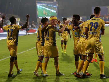 Iain Hume celebrates his goal with his teammates. ISL[/caption] Much as Mumbai protested as even the referee Pranjal Banerjee had not taken his position when the free-kick was taken by Pekuson from well outside the Mumbai penalty area, the goal was allowed to stand much to the chagrin of the home side players and eventually was the match-winner. The victory enabled Kerala to draw level on points —14 — with Mumbai who, however, remained in fifth spot by virtue of a superior goal difference after suffering a second defeat of the season at the Mumbai Football Arena. Kerala now take on Jamshedpur SC in another away game on 17 January while Mumbai take on second-placed Bengaluru FC at home a day later. Kerala started off in blistering fashion, had the better share of the exchanges till late into the first half and also took the lead via Hume, the hat-trick man in the visitors’ previous game against Delhi Dynamos. Stung by the reversal Mumbai attacked with gusto and put the visitors’ goal under pressure without succeeding to breach it. Their best chance towards the later stages of the half came when Thiago Santos was fed an aerial ball from mid-field. But the Brazilian’s angular try from the right was blocked with his right leg by Kerala custodian Subashish Roy Chowdhury who later spoilt his good show by his delaying tactics and was booked. Early in the half Everton Santos and Emana Achille combined well to spell danger to the Kerala goal but the latter was foiled in the nick of time by a defender. At the other end, a through pass by skipper Sandesh Jhingan released Hume who passed to Markos Sifneos whose try was blocked by a defender and the rebound by Jackichand Singh was easily covered and cleared by Mumbai custodian Amrinder. Mumbai then wasted another chance when Balwant Singh’s diving header off a long punt from midfield by the hard-working Sanju Pradhan went just wide of the left post. Mumbai had yet another good chance to equalise early in the second half but Balwant’s shot, off a headed pass by Everton Santos, was cleared on the goal-line with a header by defender Lalruatthara. A few minutes later Emana slotted the ball in but it was disallowed as the player was off-side. Later, Thiago and Pekuson blasted the ball over the cross-piece at either end, the former off a cross from the left and the latter off a counter-attack down the middle. With ten minutes remaining for the final whistle, Kerala secured a direct free kick from just outside the Mumbai box and Hume beat the wall only to be foiled by Amrinder with a dive to his left. Mumbai made some substitutions, even leaving out captain Lucian Goian for the first time in the season, in search of the equaliser and nearly did it when substitute Leo Costa of Brazil struck a thundering 30-yard left-footed shot into the upright with a couple of minutes remaining for the end.
