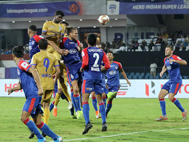 Bengaluru: Mumbai City FC stopped defending champions Bengaluru FC’s unbeaten run with a 3-2 win in a keenly-contested Indian Super League match at the Sree Kanteerava Stadium on Sunday. Subhasish Bose’s (12th minute) gave Mumbai City an early lead, but an unfortunate Matic Grgic (58th ) own-goal gave the defending champions a lifeline. [caption id=“attachment_7786231” align=“alignleft” width=“380”] Mumbai climbed to the sixth spot with 10 points from eight matches. Sportzpics[/caption] Diego Carlos (77th) headed in what looked like the match-winner until Sunil Chhetri (89th) converted from the spot to equalise. However, it was Rowllin Borges who scored the winner in the 94th minute as the the Mumbai side grabbed their first win since the opening game. Mumbai climbed to the sixth spot with 10 points from eight matches, while Bengaluru’s first defeat of the season pushed them to the third spot with 13 points. The visitors broke the deadlock in the 12th minute. Larbi delivered a terrific cross into the box from the left flank and an unmarked Bose ghosted past the Bengaluru defence to head in at the far post. Bengaluru were unable to mount an immediate response as Mumbai pressed well. A magnificent defence-splitting pass by Erik Paartalu caught the visitors’ defence unawares midway through the first half. The Australian found Udanta Singh’s run into the box perfectly, but the winger failed to make use of the chance and lobbed his effort over the crossbar. Mumbai threatened to double their lead before the break. A Modou Sougou strike on target was kept out by Gurpreet Singh Sandhu before the Senegalese striker set up Mohamed Larbi inside the box who blasted his shot over the bar. The visitors were awarded a penalty at the stroke of half-time when Amine Chermiti and Juanan ran into each other inside the box but Larbi was denied from 12 yards by the strong gloves of Gurpreet. The Blues started the second half as the stronger side with an intent to press higher up the field and win the second balls. Dimas Delgado nearly found an equaliser when the Mumbai defence failed to clear a long-throw-in into the box from the right flank. The Spaniard unleashed a curling strike from outside the box that Amrinder tipped away at full stretch. The pressure paid off as the hosts soon drew level thanks to an own-goal. Grgic accidentally sent the ball into his own net after an out-swinging corner-kick by Dimas ricocheted off the defender’s shoulder. The teams struggled to keep hold of the ball for long periods as the second-half wore on. Sougou had an opportunity to regain his team’s lead in the 65th minute after he was released into the box by Larbi but the striker opted to square the ball for Chermiti and the pass was intercepted well by Gurpreet. Mumbai looked more likely to score and the goal came via a Raynier Fernandes cross that beat the Bengaluru defence. The inch-perfect delivery from the left flank found an unmarked Carlos at the far post who headed in and silenced the home crowd. There was late drama as Sarthak Golui handled the ball inside the box and conceded a penalty in the 89th minute. Chhetri stepped up and smashed home from 12 yards to make it 2-2. Just when it looked Bengaluru had held on for a point, and their unbeaten record in the league, a Paulo Machado corner-kick unlocked a late winner for Mumbai. The delivery was nodded towards goal by Bose and was helped into the net by Borges with a fine finish from close-range.
