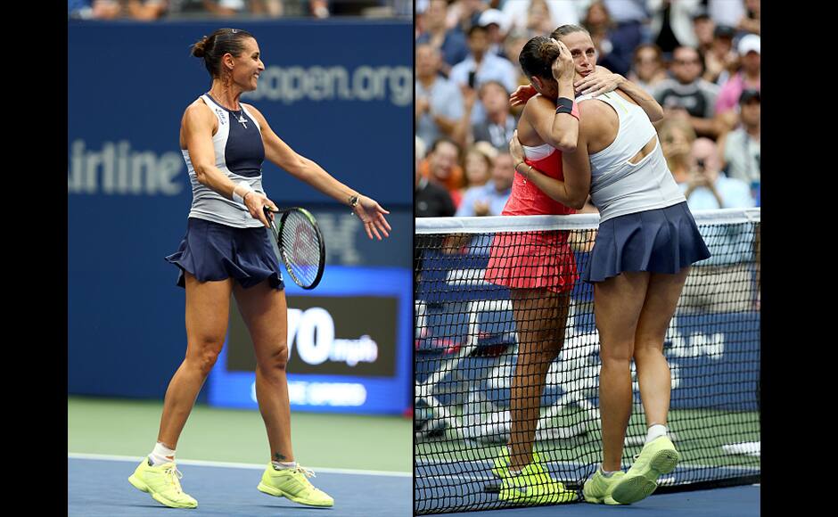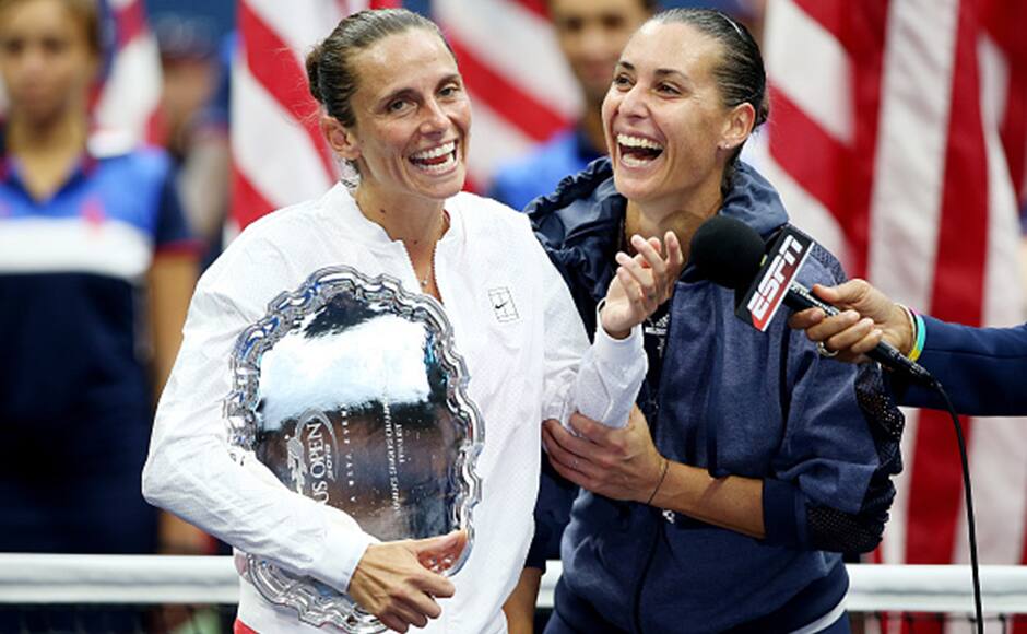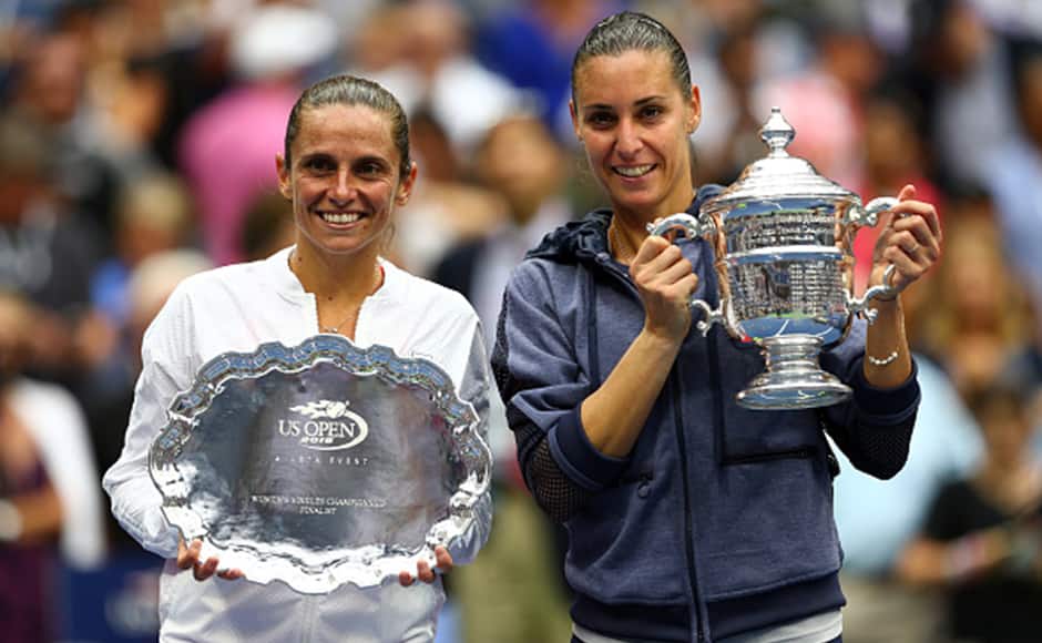 [caption id=“attachment_2431788” align=“alignnone” width=“940”]  Flavia Pennetta (R) defeated fellow Italian Roberta Vinci in straight sets to claim her maiden Grand Slam title at 33. Friends since childhood in southern Italy, Vinci, 32, and Pennetta had the oldest combined ages of any Open Era Grand Slam final duo. Getty Images[/caption] [caption id=“attachment_2431780” align=“alignnone” width=“940”]  Unseeded Roberta Vinci who won over the crowd with her charming post-match interview after defeating Serena Williams in the semis, could not bring her A game against Pennetta, but fought to the end. Getty Images)[/caption] [caption id=“attachment_2431778” align=“alignnone” width=“940”]  Flavia Pennetta, who had pulled off an upset win over 2nd seed Simona Halep in the semis, made her better ranking count on the night as she proved too hot for Vinci to handle. Getty Images[/caption] [caption id=“attachment_2431792” align=“alignnone” width=“940”]  A moment to savour for Flavia Pennetta. Both are from the southern heel of Italy’s boot, they were childhood friends, then doubles partners and roommates as teens - and the affection shone through in a long hug at the nets. Getty Images.[/caption] [caption id=“attachment_2431784” align=“alignnone” width=“940”]  The two long-time friends gave heart-warming presentation speeches filled with smiles all around. Vinci (L) joked if Pennetta thought she played well, maybe they should exchange trophies. Getty Images[/caption] [caption id=“attachment_2431782” align=“alignnone” width=“940”]  “This is how I say goodbye to tennis,” Pennetta said as her fiance, tennis player Fabio Fognini, captured the scene with his phone’s camera. “I couldn’t think to finish in a better way.” Getty Images[/caption]