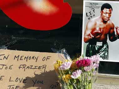 George Foreman’s crushing right uppercut connected for the first time in Round 1 and, suddenly, the heavyweight champion of the world was on the canvas. At ringside, the shocking sight sent Howard Cosell into a frenzy. “Down goes Frazah! Down goes Frazah! Down goes Frazah!” Cosell screamed into his ABC television microphone. Across the ring, Foreman was thinking one thing: Please don’t let Joe Frazier get up. “I saw him get up and I said to myself, ‘Oh boy, he’s going to get me now,” Foreman recalled Tuesday during a telephone interview. “You didn’t want him getting up, and you really didn’t want him getting up mad.” [caption id=“attachment_126790” align=“alignleft” width=“380” caption=“AP”]  [/caption] Get up Frazier did, only to go down again and again. Six times in all before the bell could sound to end the second round. Yet there he was still, out on his feet but still upright and ready for more. Frazier wasn’t going to surrender his heavyweight title until the referee mercifully put an end to the carnage in Jamaica. “Joe Frazier wouldn’t back away from King Kong,” Foreman said. “Joe Frazier was one brave man.” Brave enough to take on the fearsome and much bigger Foreman in a fight he seemed destined to lose. Brave enough to hand Muhammad Ali his first loss and then almost fight to the death with him in the Philippines. But that’s what Frazier was. An undersized warrior who didn’t know how to back down. A fighter to the core. Understand that, and you understood Joe Frazier. He kept getting up when Foreman knocked him down. He kept trying to fight Ali even though one eye was swollen shut and he couldn’t see out of the other. And he kept fighting for his rightful place in history until his death Monday night in Philadelphia at the age of 67. “His pride and dignity made him fight to the end,” Don King said. “Joe never forgave Muhammad Ali for what he did to him, but Joe Frazier proved that he wasn’t only a great fighter but a great man.” Watch slideshow of his fights with Muhammed Ali [fpgallery id=307] I spent some time talking to Frazier earlier this year as he reminisced about his career and his life. The 40th anniversary of the Fight of the Century was looming, and Frazier was more than happy to talk about a memorable night long past. No one in Madison Square Garden that night, it seemed, wanted him to beat Muhammad Ali. Not the fans who scraped together enough money to get a cheap seat in the rafters, and certainly not the celebrities and various rogues of the night who dressed in their finest to parade around ringside before the bout. Frank Sinatra shot pictures for Life magazine from ringside. Barbra Streisand and Bill Cosby watched from seats just a few steps away. They saw Frazier do what no man had done before — beat the great Ali. If that wasn’t enough, he knocked Ali down in the 15th round with one of his classic left hooks to seal the deal. I can’t go nowhere where it’s not mentioned," Frazier said. “That was the greatest thing that ever happened in my life.” He fought Ali the way he fought everyone, with his chin planted on his opponent’s shoulder, because that was the only way he could fight. Frazier barely stood 5-foot-10, never weighed more than 205 or so. He wasn’t going to beat people with his physical skills, so he figured out a way to keep relentless pressure on until he could find a way to land a left hook that surely was one of the most beautiful punches in boxing. It didn’t work against Foreman because Foreman was simply too big, too powerful. Ali found a way to beat him in their final two fights, too, including a fight so epic that boxing people simply shake their heads when asked what happened at the Thrilla in Manila. Ali would later say it was the closest thing he ever knew to death. Though blinded by his swollen eyes, Frazier still tried to fight the 15th round against one of the greatest fighters ever. The bitterness toward Ali that Frazier carried throughout the rest of his life was especially rooted in that fight. Ali called him a gorilla, an Uncle Tom. When Frazier returned home, his children asked why the other kids at school were saying the same thing. [caption id=“attachment_126791” align=“alignleft” width=“380” caption=“AP”]  [/caption] “Joe could never forgive him for that,” King said over the phone. “But you have to know the times, the race struggle in America. Joe couldn’t understand why some of the blacks looked at him with disdain and then extolled Muhammad Ali. But Smokin’ Joe was an integral part of history. That fight changed things for a lot of people. It changed the respect paid when people would look at other people of color.” That fight changed things for Frazier, too. Neither he nor Ali were ever the same after the brutal bout, and Frazier would have only one more meaningful fight, a second knockout loss to Foreman. He would burn through all the riches he made in the ring, ending up in an apartment over his gym in Philadelphia. But he loved to make appearances, loved to be with fans, as he was in September when he signed memorabilia in Las Vegas. “Joe Frazier, sharp as a razor,” he told them. Ali put out a statement saying he would always remember Frazier with respect and admiration, something Frazier surely would have scoffed at. In the end, he’ll go down as one of the great heavyweights ever, a man who fought hard in Ali’s shadow, then fought even harder to get out of it. “All he wanted to do was beat up Muhammad Ali one more time,” Foreman said. “Maybe someday in heaven he’ll have a chance to do it.” AP