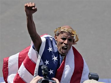 Meb Keflezighi on Monday became the first US male athlete to win the Boston Marathon in three decades as onlookers chanted “USA! USA!,” an emotional performance in a city still recovering from last year’s fatal bombing attack. Keflezighi, who was born in Eritrea but is now a U.S. citizen, pulled ahead of a pack of elite African runners a little more than halfway into the race and held off a late challenge by Kenya’s Wilson Chebet to finish in two hours, eight minutes and 37 seconds. Among the women, Kenya’s Rita Jeptoo notched her second consecutive win of the race, smashing a 12-year course record with a blistering time of two hours, 18 minutes and 57 seconds, reeling in American Shalane Flanagan, who had set a punishing pace as she led the women for the first 20 miles of the 26.2-mile (42.2-km) race. [caption id=“attachment_1490603” align=“alignleft” width=“380”]