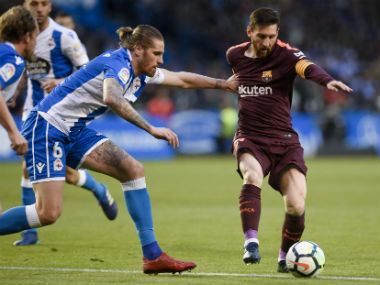 Madrid: Barcelona coach Ernesto Valverde was delighted that his side “finally” wrapped up a 25th La Liga title with four matches to spare, after a Lionel Messi hat-trick secured a thrilling 4-2 victory at Deportivo La Coruna on Sunday. [caption id=“attachment_4450531” align=“alignleft” width=“380”]  Barcelona’s Lionel Messi in action against Deportivo La Coruna. AFP[/caption] Valverde’s men completed a league and cup double after thrashing Sevilla 5-0 in last week’s Copa del Rey final, regaining the Spanish crown from Real Madrid and relegating Deportivo in the process. “When you chase it for so long you say ‘finally’,” he told Spanish television. “I feel very happy because in the end the league is very long, it starts in August… and when spring arrives everything is decided, we have passed everything. “We’ve been pursuing it since the beginning, we have been in the lead, we’ve finished well, with a big margin… It’s the first La Liga that I’ve won.” The only blip on the Catalans’ season was the stunning Champions League quarter-final loss at Roma when they blew a 4-1 first-leg lead. “The elimination (by Roma) marked us a little bit because it was unexpected, but out trajectory has been extraordinary,” added Valverde. “There is always a small ‘but’, but we’ll try again next year.” Barca knew they just had to extend their record unbeaten streak to 41 La Liga matches to seal a seventh title in 10 seasons, and Philippe Coutinho fired them into an early lead. Messi’s 38th-minute volley made it two, but Lucas Perez pulled one back for Deportivo before half-time and Turkish winger Emre Colak stunned Barca with an equaliser midway through the second period. Barca finally saw off their stubborn hosts, though, as Messi pounced after a brilliant one-two with Luis Suarez before slotting in to complete his 30th La Liga treble. The Catalan giants now hold an unassailable 11-point lead over second-placed Atletico Madrid, who have just three games to play, and are closing in on becoming the first Spanish side to go through a top-flight season without tasting defeat. “We have managed an almost perfect league campaign, without losing so far. I hope we can continue,” midfielder Sergio Busquets said. Andres Iniesta was surprisingly left on the bench after the midfield great announced earlier this week that he will leave the club at the end of the season. But it was his expected long-term successor Coutinho who broke the deadlock in the seventh minute, bending an exquisite finish into the top corner for his third La Liga goal for the club since signing from Liverpool in January. Deportivo had to win to stave off relegation for another week, but Clarence Seedorf’s men were denied an equaliser when Perez was flagged offside after tapping in from close range. Messi went close to doubling the advantage just before the half-hour mark, only for home goalkeeper Ruben to pull off an excellent one-handed save to turn his free-kick around the post. Deportivo cause problems Deportivo were causing Barca plenty of problems at the back, though, and centre-back Fabian Schaer should have levelled as he headed over when unmarked inside the six-yard box. But Messi drilled a curling Suarez cross past Ruben at the keeper’s near post to score his 30th league goal of the campaign, before on-loan Arsenal striker Perez swept home to halve the deficit just two minutes later. Despite the close scoreline, Barca were playing as if the second half was a pure title party, with centre-back Gerard Pique even performing a few ‘keepie uppies’ on the left wing. Their complacency cost them in the 64th minute, as Celso Borges unselfishly squared for Colak to score. Suddenly the champions-elect were desperately trying to hang onto their unbeaten record, as goalkeeper Marc-Andre ter Stegen made a smart stop from another Schaer header. But Barcelona showed their class as Suarez and Messi combined to terrific effect with eight minutes to play – the latter clipping the ball in off the post. Suarez again sent the Argentinian racing clear three minutes later, and the 30-year-old made no mistake to complete a hat-trick. The 33-year-old Iniesta came on to a standing ovation in the 87th minute as Barca closed out a successful title-winning campaign in style.