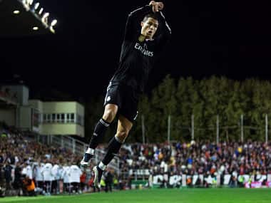 Cristiano Ronaldo scored his 300th Real Madrid goal as the European champions remained four points adrift of La Liga leaders Barcelona with a 2-0 win at Rayo Vallecano on Wednesday. Earlier, Lionel Messi and Luis Suarez were on target as Barca eased past Almeria 4-0. Barca took over half an hour to make the breakthrough, but Messi did so in style as he curled home his 44th goal of the season into the far corner. [caption id=“attachment_2190243” align=“alignleft” width=“380”]  Cristiano Ronaldo celebrates after scoring against Rayo Vallecano. Getty[/caption] Suarez made the game safe when he fired into the top corner 10 minutes after the break and bagged his second of the evening in stoppage time after Marc Bartra headed home the third from Xavi’s corner. “It is the stage of the season where we have a lot to play for,” said Suarez. “We ought to show our personality because we are Barcelona. “In the league we depend on ourselves and we need to continue in this vein.” Madrid endured a much more uncomfortable evening in a capital derby at Rayo before Ronaldo and James Rodriguez struck midway through the second-half. “We suffered, but in the end we won which is the most important thing,” said Rodriguez, who again impressed in just his second game back after two months out with a foot injury. “In the first-half they were intense, we knew that in the second they would get a bit tired and not be able to pressure so much and it was like that.” Rayo dominated the first period in terms of possession, but it was still Madrid who had the better chances as Rodriguez shot straight at Diego Cobeno when unmarked inside the area before Ronaldo headed over from the Colombian’s free-kick. At the other end, Iker Casillas made a fine save to keep the visitors level at the break as he parried Roberto Trashorras’s back post header to safety. Madrid started much stronger after the break and were inches away from an opener when Gareth Bale’s header from Rodriguez’s cross looped just wide. There was then a huge moment of controversy when Ronaldo was booked despite appearing to be clearly brought down by Antonio Amaya inside the area meaning he will miss Saturday’s visit of Eibar to the Santiago Bernabeu. The chances continued to come and go for Real as Benzema, Marcelo and Bale fired just off target in a matter of minutes, and the goal finally arrived when a fine run and cross from Dani Carvajal picked out Ronaldo and he sealed his triple century of goals for Madrid in just 288 games. Six minutes later it was 2-0 as Ronaldo turned provider this time for Rodriguez to curl home. Barcelona also started slowly at the Camp Nou as boss Luis Enrique made six changes with one eye on Saturday’s tough trip to Sevilla. However, Messi opened the scoring in brilliant fashion when he found space on the edge of the area and curled into the far corner with pinpoint accuracy. Suarez made sure of Barca’s 20th win in their last 21 games in all competitions with a little help from Cuesta the keeper got a hand to the Uruguayan’s powerful effort but couldn’t keep it out. A consistent feature of that run has been the Catalans sudden ability to score from set-pieces and they did so for the third consecutive game 15 minutes from time when Bartra rose highest to power home Xavi’s in-swinging delivery. And Suarez was gifted his second when Pedro Rodriguez unselfishly picked out the former Liverpool man to roll into an empty net. At the other end of the table Deportivo la Coruna sacked manager Victor Fernandez after Cordoba ended a 10-game losing streak with a 1-1 draw against the Galicians at La Riazor. Granada’s survival hopes also suffered a huge blew as Theo Bongonda struck a 93rd minute equaliser for Celta Vigo to secure a 1-1 draw at Nuevo Los Carmenes. AFP