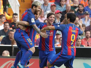 Madrid: Both unbeaten and off to club record starts in La Liga, Valencia host Barcelona in the game of the La Liga season so far on Sunday (1945GMT) aiming to prove their title credentials are for real. After two seasons in the doldrums riddled by coaching changes and questions over Singaporean owner Peter Lim’s running of the club, Valencia have been revitalised by a combination of new boss Marcelino Garcia Toral and sporting director Mateu Alemany to post a record run of eight straight La Liga wins. They still, though, trail Barca by four points at the top of the table as the Catalans have amassed 34 points from a possible 36. [caption id=“attachment_3760729” align=“alignleft” width=“380”]  File image of Barcelona players. Reuters[/caption] “The truth is the team has changed completely. Not just on a playing level but also our mentality. That is what the coach has helped us a lot with,” said Valencia’s top scorer Simone Zaza, himself reborn after a disastrous loan spell at West Ham United last season. In contrast to recent years where Lim’s recruitment has been questioned for his closeness to Portuguese super agent Jorge Mendes, the majority of Valencia’s seven new signings after another summer clearout have shone. However, the need for Los Che to take advantage of poor starts to the season by Real Madrid and Atletico Madrid for a historic achievement like a first La Liga title since 2003/04 is intensified by the fact that three of their top performers — Goncalo Guedes, Geoffrey Kondogbia and Andreas Pereira — all arrived on season-long loan deals. Nevertheless, Lim hit back at his critics blaming ‘fake news’ and ‘fake fans’ for Valencia’s struggles in the last two seasons. “Peter Lim invested more than 200 million euros of his own money to save this club. None of the fake fans who pretend to defend this club from Meriton and from Peter Lim put any money to save this club,” read a recent Valencia club statement. Former Valencia and Barcelona striker David Villa also had no doubt that Marcelino would have an instant impact. “I’m not surprised about Marcelino’s numbers,” said Villa, now plying his trade with New York City. “We’ve known each other from his first stint as a head coach at the Sporting Gijon B team. As soon as he signed for Valencia, I said that I was fully convinced that he would change the team and the club’s direction with positive results.” Messi rested Marcelino will have to watch from the stands on Sunday after being sent-off in last weekend’s 2-0 win at Espanyol as he attempts to beat Barcelona for the first time as a coach at the 15th attempt. To do so, his free-scoring Valencia will have to penetrate a Barcelona defence propped up by goalkeeper Marc-Andre ter Stegen that has recorded 13 clean sheets in 18 games this season. “He is in great form, although our intention is that he doesn’t have to make so many saves,” admitted Barca boss Ernesto Valverde after the German pulled off a stunning stop in the final seconds from Paulo Dybala to ensure a 0-0 draw at Juventus on Wednesday. The importance of the Mestalla meeting for Barca was underlined as Valverde left Lionel Messi on the bench for the first hour in Turin to keep him fresh. Messi will return, but Barca will be without the suspended Gerard Pique meaning Thomas Vermaelen is likely to be forced into a first La Liga start of the season with Javier Mascherano also sidelined by a hamstring injury. Both 10 points adrift of Barca, Real and Atletico can close the gap at the top on Saturday when they face Malaga and Levante respectively. Fixtures (all times GMT) Friday Celta Vigo v Leganes (2000) Saturday Alaves v Eibar (1200), Real Madrid v Malaga (1515), Real Betis v Girona (1730), Levante v Atletico Madrid (1945) Sunday Deportivo la Coruna v Athletic Bilbao (1100), Real Sociedad v Las Palmas (1515), Villarreal v Sevilla (1730), Valencia v Barcelona (1945) Monday Espanyol v Getafe (2000)