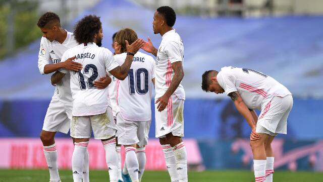 Atletico went into the game having been top since December and on the back of beating Osasuna with two goals in the last eight minutes, a victory that was so dramatic it felt like it would prove decisive. But Atletico have done nothing the easy way this season, with their 10-point lead in February cut to two in May and their position at the top of the table relying on numerous slip-ups from both Real Madrid and Barcelona. So it was apt that faced with beating Real Valladolid, who were 19th in the table, they still had to scrape over the line. Several hundred Atletico fans gathered in Valladolid’s Plaza Mayor in the hours before kick-off to sing songs and a similar number made it outside the stadium, where they were cordoned off in a cess-pit of nerves and anticipation. Players screamedSuarez had a couple of early openings but any hopes for a comfortable afternoon were dashed in the 18th minute when Valladolid took the lead. It came from an Atletico corner as Yannick Carrasco lost the ball and Valladolid broke at speed, pinging passes through midfield and finally through to Oscar Plano, the former Real Madrid youngster who pulled away and fired past Jan Oblak. There was plenty of time left and the other consolation for Atletico was Real Madrid fell behind too, Gerard Moreno’s poked pass causing confusion at the back, with Yeremi Pino prodding Villarreal into the lead. Atletico pushed as Suarez’s effort curled wide and Felipe headed straight at Jordi Masip but they also looked for calm. Players screamed at Oblak to give the team a moment to regroup. Simeone told the substitutes to quieten down. Both title contenders were trailing at half-time but Atletico came out with renewed vigour and a crucial few minutes fell their way. Real Madrid struck first, Benzema heading in Casemiro’s cross before Angel Correa levelled for Atletico as well, collecting on the edge of the area and firing through the legs of Jawad El Yamiq. [caption id=“attachment_9647051” align=“alignnone” width=“640”]  Real Madrid players react at the end of their final match of the 2020-21 LaLiga season against Villarreal, which they won 2-1. AP[/caption] Atletico’s equaliser, though, was made all the more precious after Real Madrid’s was ruled out, Benzema’s left arm shown to be offside by VAR. Valladolid might have scored again but Shon Weissman headed over with the goal gaping and then Atletico took the lead, a gift of a pass-back by Sergi Guardiola allowing Suarez to skip clear. Suarez slid the ball past Masip before ending up under a pile of Atletico teammates. Real Madrid equalised in the 87th minute, Benzema curving a delightful finish into the top corner and it was still not over, Modric scoring again to leave Atletico with some nail-biting final moments.