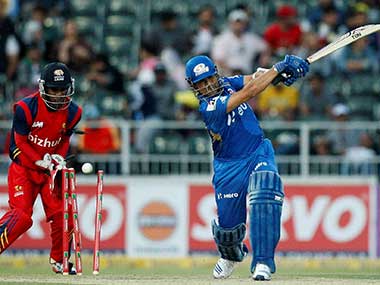 Johannesburg: He was gunning for Sachin Tendulkar’s wicket ever since Highveld Lions were drawn to play Mumbai Indians in the Champions League Twenty20 and so thrilled was little-known spinner Aaron Phangiso after getting the prized scalp that he remained up all night to celebrate. Lions defeated the defending champions by eight wickets with seven balls to spare last night. Aaron’s lone contribution to his team’s winning cause was dismissing Tendulkar for a mere 16. The victory dance that followed the dismissal showed what it meant for the hardly-known Aaron to dismiss the revered Indian veteran. “I enjoyed that wicket especially being one the greatest batsman in the world, Sachin Tendulkar; I enjoyed that a lot,” Aaron said after the match. [caption id=“attachment_490683” align=“alignleft” width=“380”]
