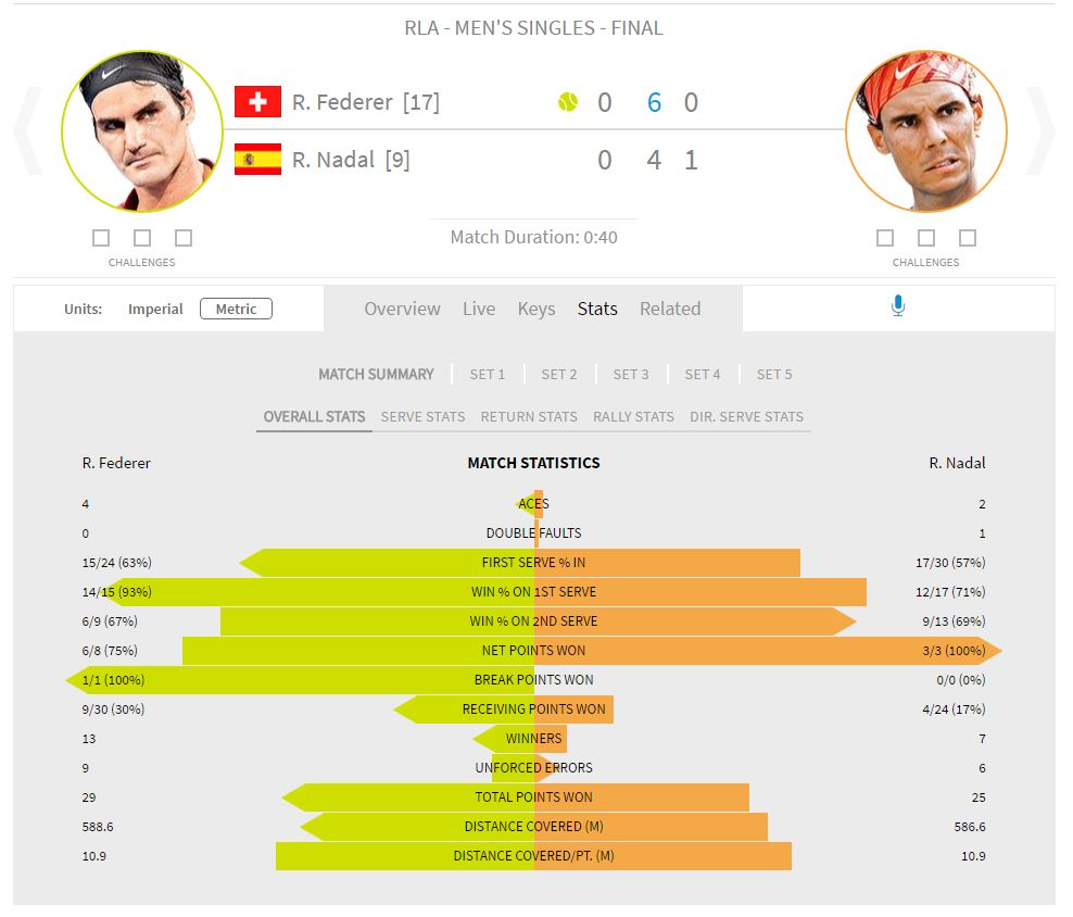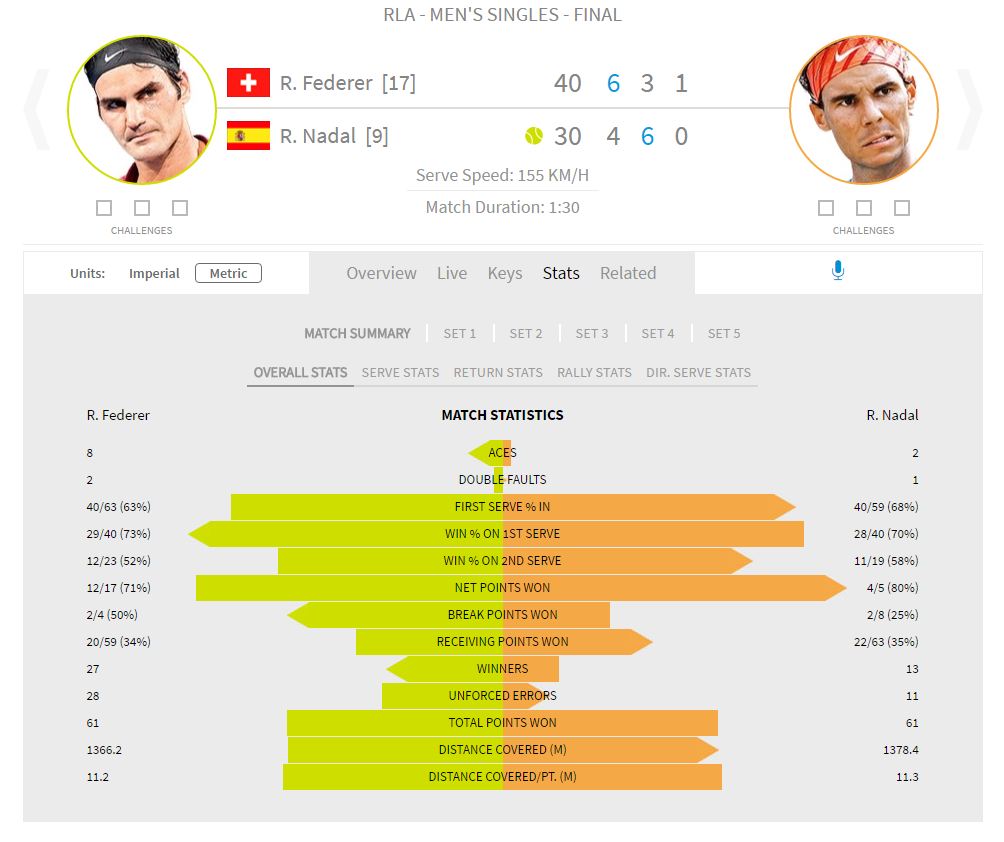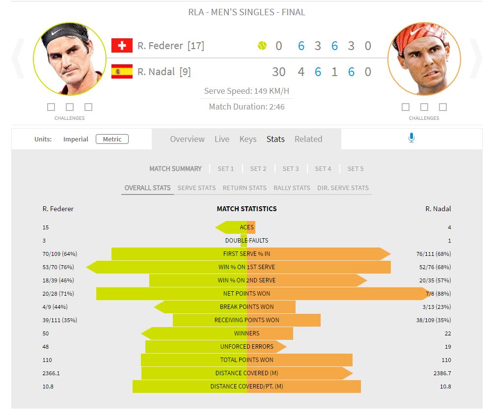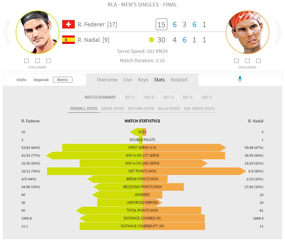 Let’s take a look at the stats after the win for Roger Federer!