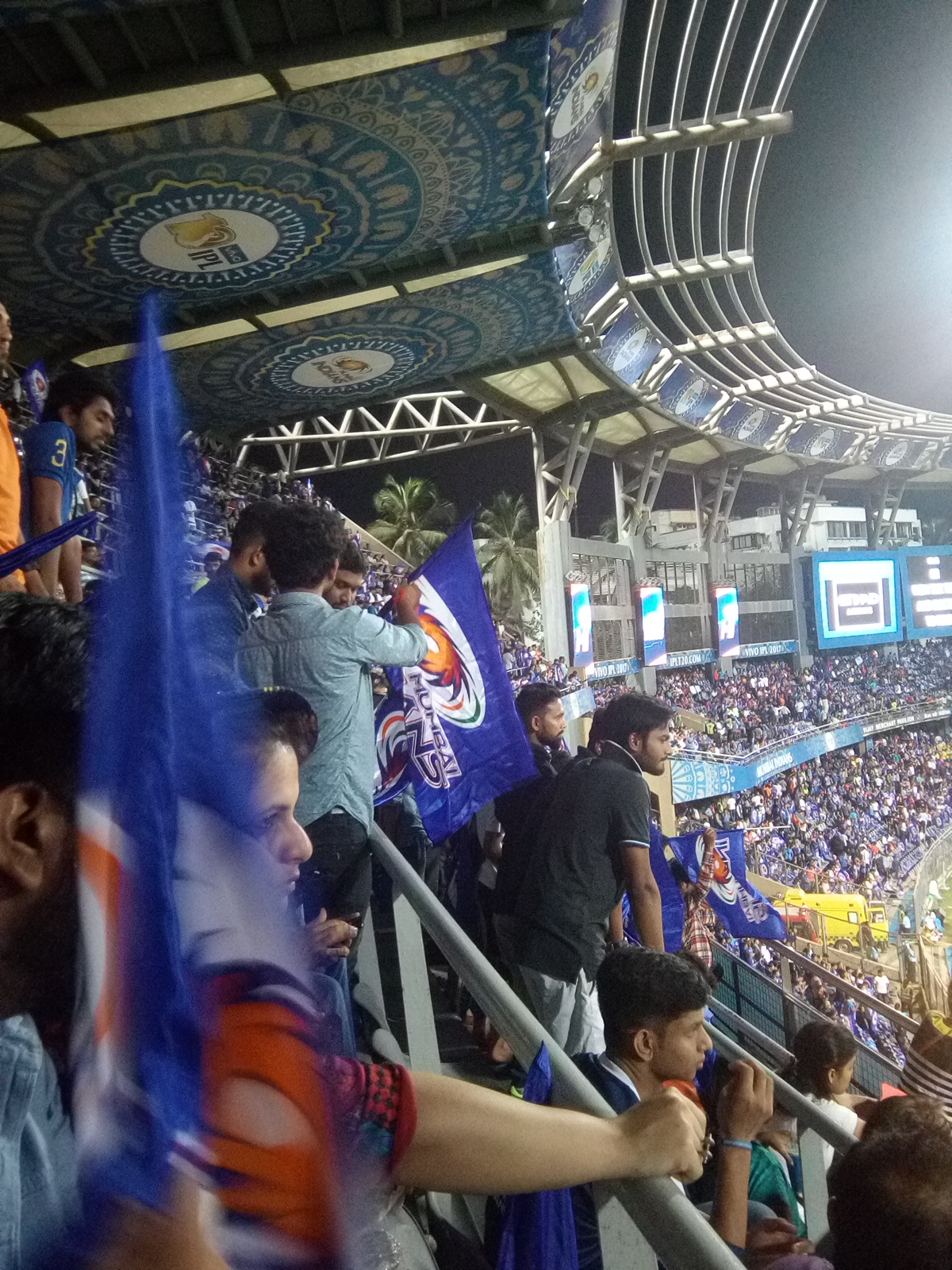 Meanwhile, Sachin has just entered the MI dug out and there is a buzz among the crowd.