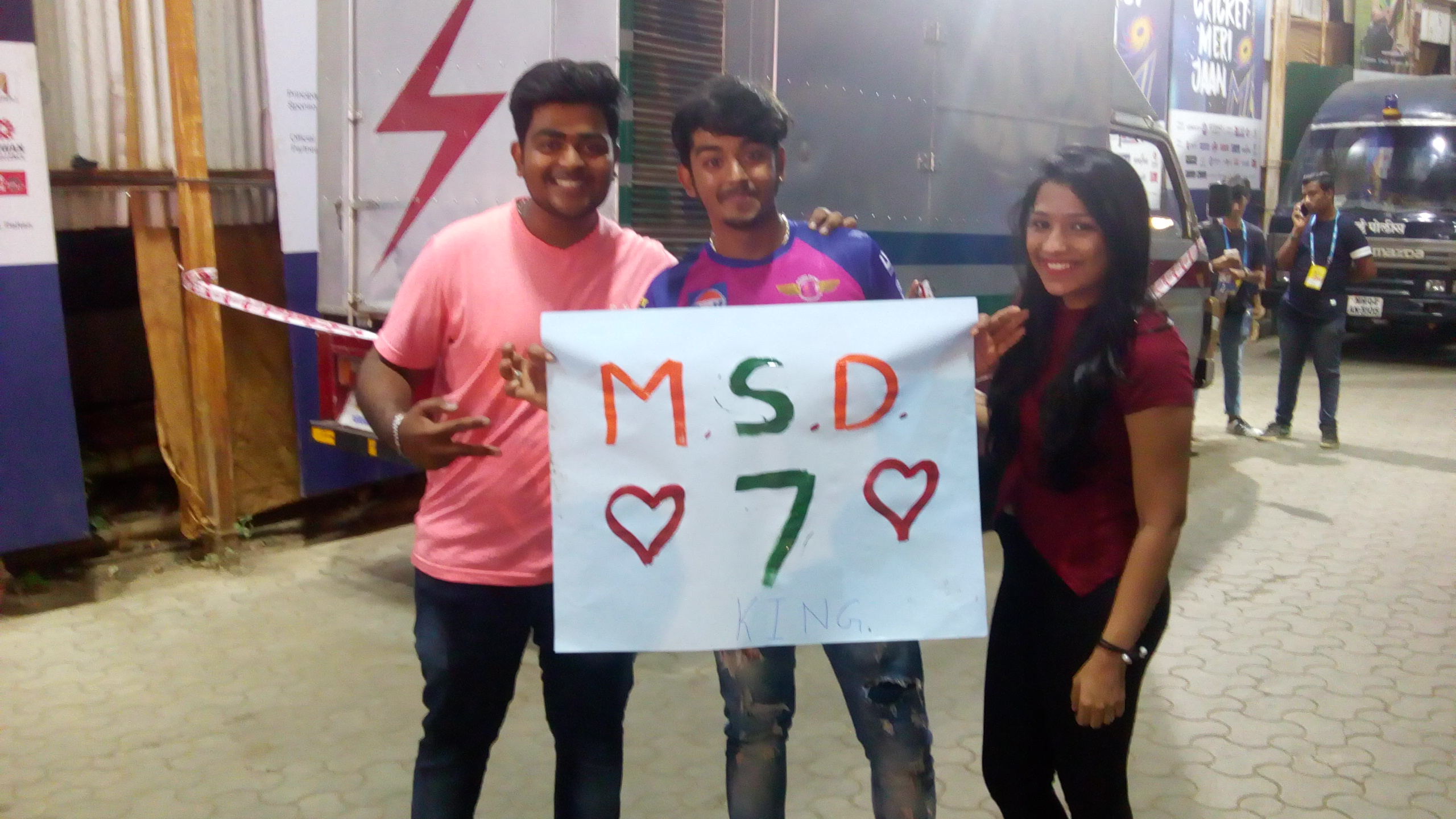 Lots of MSD love, people are still trying to get inside the stadium. Banners, Dhoni jerseys.