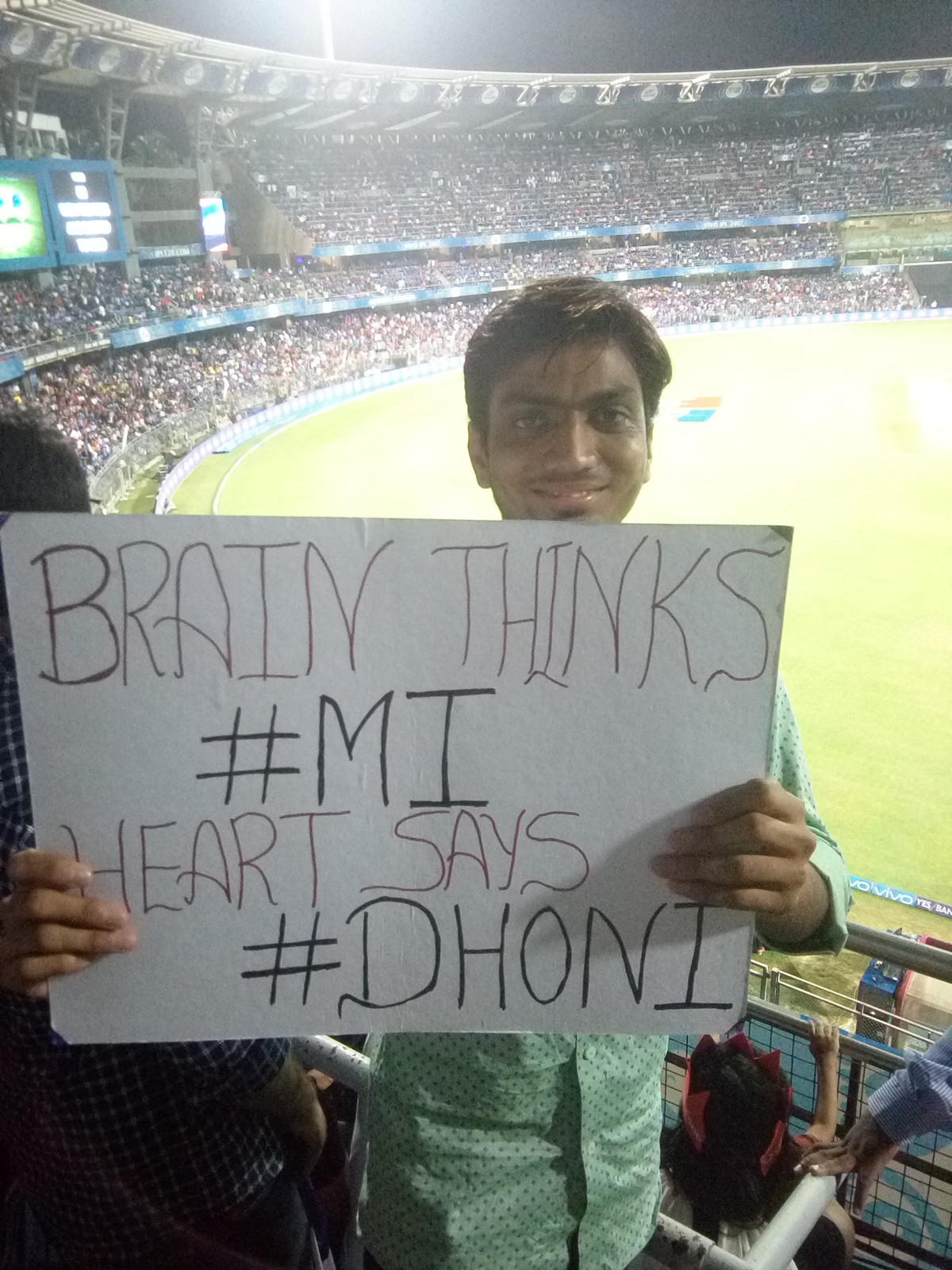 ‘Mind thinks MI, heart says Dhoni, ’ says a banner.