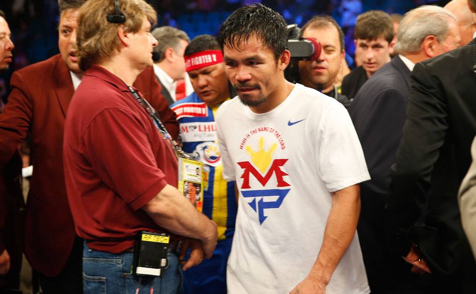 Manny Pacquiao said a right shoulder injury prevented him from fighting at his best in his loss to Floyd Mayweather Jr. Nevada officials also denied Pacquiao’s request to take an anti-inflammatory shot in his dressing room before the fight Saturday night. The chairman of the Nevada Athletic Commission said the ruling was Pacquiao’s fault for not mentioning his injury sooner. “It’s part of the game,” Pacquiao said. “I don’t want to make alibis or complain or anything … (but) it’s hard to fight one-handed.” Pacquiao, trainer Freddie Roach and promoter Bob Arum were vague on the details of the injury, but confirmed that they considered postponing the bout a few weeks ago. [caption id=“attachment_2224542” align=“alignleft” width=“300”]  Manny Pacquiao. Reuters[/caption] “I thought he fought a courageous fight under all the circumstances, and I’m very proud of what he accomplished tonight,” Arum said. Pacquiao got hurt some time after mid-March, and Arum said the injury was “the same as the one Kobe Bryant had.” Bryant tore his rotator cuff in January, ending his season with the Los Angeles Lakers. Arum didn’t make it clear whether that was the injury he was referencing, but said Pacquiao consulted the same doctor that treated Bryant. Arum said Pacquiao’s camp thought he would be allowed to have an anti-inflammatory shot because he had similar treatment during training. The shots also had been approved by the U.S. Anti-Doping Agency. But Arum said Top Rank filed incorrect paperwork about the injury, and the Nevada commission ruled against the request for a shot. Francisco Aguilar, chairman of the Nevada Athletic Commission, said the Pacquiao team did not disclose the injury until Saturday night, so the requests for permission to take the shot and to have a personal doctor in Pacquiao’s corner were denied. “We were not aware of his injury until tonight at 6:30,” said Aguilar, who made the ruling. “The medications he was taking were disclosed on his medical questionnaire, but not the actual injury. … This isn’t our first fight. This is our business. There is a process, and when you try to screw with the process, it’s not going to work for you.” Pacquiao’s camp apparently hoped the fighter could compete without the shot. Despite Pacquiao’s limitations, Arum said he didn’t regret putting Pacquiao into the fight at less than full strength. “Athletes always fight hurt,” Arum said. “We felt that the work that was done on the shoulder during training would give him the opportunity to use the right hand. We were disappointed when in the third round the injury kicked up again, but this is always the case with sports. You get guys injured in training. He then deals with the injury, he thinks he’s conquered it, and then he gets re-injured in the game. It happens in football. It happens in any sport.” Mayweather concurred with his former promoter, noting that he fought with injuries to both of his arms and hands. The post-fight disclosure of Pacquiao’s injury adds a legitimate angle to discussion of a rematch. Pacquiao demonstrably fought with only a portion of his usual punch output, and his inability to use his right hand consistently made it easier for Mayweather to control the fight. Roach was proud of his fighter’s persistence through injury, but frustrated with Pacquiao’s ability to implement his game plan, particularly his inability to throw a right hook. “It was a very close fight,” Roach said. “We’d love to do it again, but hopefully that’s in the future.” AP
