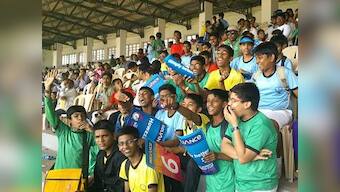 The schoolkids are the real stars of the Women’s World Cup. Firspost[/caption] While the journalists surely add their shouts of ‘shot!’, ‘fielding!’ and ‘bowled!’ with occasional clapping – and all of this is (hopefully) pretty audible to players, considering there’s very little noise at the stadiums – the kids have added a different dimension to the games. A very simple example would be a comparison between the atmosphere at the BKC ground and that at the Brabourne. I’d call the Brabourne a stormy sea with crashing waves – and the BKC a calm lake with only the sound of wind moving over it. Stanley Louis is the sports teacher at Our Lady of Good Counsel - Sion (OLGC), and was in charge of 70 kids who had woken up at 7 AM on a Sunday morning to be at the game. Amid a chorus of ‘O-L-G-C’, he told Firstpost: “It’s been a great experience. Most of these kids have never seen a live sport event. But it’s sad to see the stadium empty apart from this stand… especially since the event is free. Also, it’s pretty sad the cameras don’t roll towards the crowd. Parents are watching on TV, asking us where the kids are seated!” Observing the kids was a fantastic experience. There were girls and boys in equal measure and most of the fans were joining in the fun. As sponsors came with their ‘4’ and ‘6’ posters, they rushed towards the distributors to collect them. And all credit to the ICC to create this buzz in Mumbai. An earlier