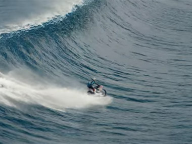 As if regular surfing was not hard enough — and Australian stuntman has now done it on a motorbike. Robbie Maddison tried the stunt in Teahupoo in Tahiti and a video shows how incredible his feat is. Maddison’s bike has a combination of propeller tyres and skis which he designed himself to ride on water. [caption id=“attachment_2377154” align=“alignleft” width=“380”]  Maddison gets ready to take on the immense wave. YouTube screengrab[/caption] “It was a stupid vision at the time, but I kept toying with it, playing with designs and concepts, and eventually it became a reality,” Maddison, who also doubled for Daniel Craig in the James Bond movie Skyfall, is quoted as saying by ITV. The video, which starts with Maddison riding over blue waters, leaving kayakers surprised, ends with the big stunt — and while it may seem easy with all the slow motion effect and music, the 34-year-old says that he thought he was going to die when he saw the size of the wave. “I don’t think the photos or video show how physical it was. You can’t see that when the wave broke right behind me, I honestly thought that might be the end of my life. I’ve never felt like I was in the wrong place at the wrong time more than I did right there,” he said. Maddison is fondly called “Australian Evel Knievel” by his fans — and you can check out his insane stunt in the video below. Oh, he’s also done a leap up and down on his bike at the Arc de Triomphe at the Paris Las Vegas resort.