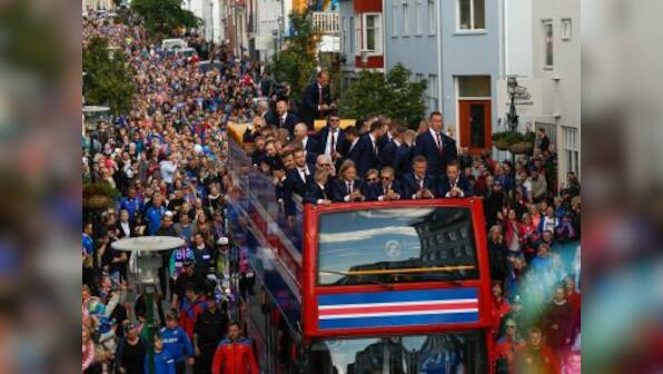 Reykjavik: Iceland’s footballers received a heroes welcome on returning home on Monday following their astonishing run to the Euro 2016 quarter-finals in France. Their plane flew low over the capital Reykjavik before landing at Keflavik airport where the local fire services gave them a fire hose guard of honour with shooting water creating a rainbow. Striker Kolbeinn Sigthorsson, who scored a consolation goal in the crushing 5-2 defeat to the hosts at the Stade de France on Sunday said he was happy to be home. [caption id=“attachment_2873954” align=“alignleft” width=“380”]  Icelandic soccer fans celebrate as their national team comes home to a hero’s welcome from the Euro 2016. AP[/caption] “It was a dream come true to get that support,” he said of the estimated 30,000 fans — some ten percent of the population — who followed the nation in France. “We experienced something simply wonderful, it was a dream come true and we are proud to have brought such cheer to our country,” he said, adding that the friendly behaviour of the fans had done the country proud. The players were then paraded through the streets of the capital on a double decker bus in the direction of Arnarholl Park, to celebrate with their fans and sing the famous “huh” - the Viking war chant - which is actually Scottish, punctuated by hand clapping. “Fairy tales still exist! It’s rare — if indeed this has ever happened — to unite us Icelanders as you did on the football pitch,” Prime Minister Sigurdur Ingi Johannsson told the team in downtown Reykjavik, to the resounding cheers of tens of thousands of supporters. “You are a national treasure!” he added as fans waved flags and team jerseys, and children held aloft cards with their favourite players. To the delight of the crowd, the heroes of the day sang the “huh” watched emotionally by Swedish coach Lars Lagerback who hailed a “team performance” and confided he felt “at home” whenever he was in Iceland.