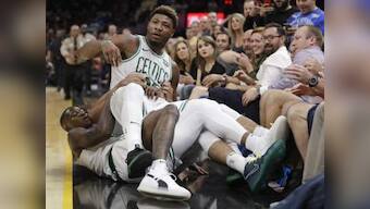 Washington: LeBron James is gone, but the Cleveland Cavaliers and Boston Celtics still have an intense NBA rivalry that spilled over into a scuffle in a pre-season game. Cleveland guard JR Smith and Celtics guard Marcus Smart were involved in an altercation 8min 22sec into the first quarter of the Cavaliers’ 113-102 pre-season home victory over Boston. The rematch of last season’s Eastern Conference finals lacked some of the drama of May’s showdown between the clubs, which featured James before the four-time NBA Most Valuable Player left the Cavs for the Los Angeles Lakers. But it wasn’t lacking for passion after Smith and Australian forward Aron Baynes of the Celtics tangled in the paint and began shoving each other. That prompted Smart to join in and shove Smith, with both men needing to be restrained to calm matters.