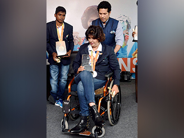 Cricketer Sachin Tendulkar with paralympic silver medalist Deepa Malik and gold medalist Mariyappan Thangavelu during a felecitation ceremony. PTI[/caption] These include Murlikant Petkar (1972), Bhimrao Keskar, Joginder Singh Bedi (both 1984), Rajinder Singh Rahelu (2014) and H N Girisha (2012). The GoSports Foundation would also receive Rs 35 lakh to continue its endeavour in supporting and developing future Paralympic champions. The contributors to the corpus of fund include Tendulkar, V Chamundeshwarnath (President Hyderabad District Badminton Association), Nimmagadda Prasad (Industrialist and Co-owner Kerala Blasters), Dr Azad Moopen (Chairman and Managing Director, Aster DM Healthcare), Sanjay Ghodawat (Chairman, Sanjay Ghodawat Group) and Abhay Gadgil (Director, Abhay Gadgil Constructions). Speaking on the occasion, Malik said, “It is sad that every time we say Paralympics, we have to add it is Olympics Paralymics. It is still not understood that Paralympics also means Olympic-level competition (for the differently abled). I am grateful to Sachin Sir (for the initiative).” “My world record was broken after 12 years in Rio. Before this, I held the world record in 2004, which no one was able to break. I went to Finland for training and used to train for 8 hours which is the longest training of my life,” said Jhajharia. “I was the flag-bearer of the country in Rio, so the responsibility was more on me for India. People discussed that Devendra is 35 years-old and will not be able to do. But age is not a factor, your efforts (matter). “I consider Sachin Sir as my role model. I am happy I could meet him,” he added. Thangavelu said, “I wanted to achieve something and take care of my mother (who is a wage labourer) and therefore I started looking for sports. I liked cricket, saw Kapil Dev and Sachin playing and was keen to play for India and win gold. “When I was a student, my friends never used to take me for games, but then I felt that I could do it and started high jump when I was in 8th standard. Then gradually progressed for college and university level. After winning (the medal), when I saw the Indian flag, I was in tears and I am very satisfied that I made my country proud,” he added. Bhati said, “Last time in London only 10 athletes had gone and one medal was bagged. After four years, this time we had 19 athletes and four medals.” Tendulkar said he was extremely proud of all the Paralympic medal winners and the others who took part in Rio and termed them “extraordinarily-abled”. “It’s a special moment. I am truly honoured to be here. As an Indian, I am extremely proud of all four of you and the other athletes also who participated. The whole world calls them differently challenged and abled. According to me, these champions are extraordinarily-abled.” “We all sportsmen have our fair share of trials and tribulations. But, with these athletes, by multiple folds it happens more. “Adversity and challenges to deal with all those things is something, which doesn’t happen on its own. It requires lots of focus, effort, determination and dedication and support of your family. And to overcome all these obstacles, I think our champions have come out with flying colours,” the retired batting maestro said. The Rio Paralympics champion athletes were also presented smartphones and laptops from Smartron along with free lifetime healthcare support at Aster DM Healthcare facilities in India as part of their felicitation.