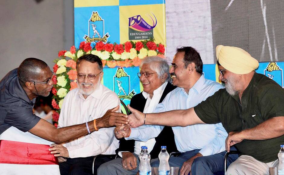[caption id=“attachment_1798795” align=“alignleft” width=“940”]  Kolkata: CAB President Jagmohan Dalmiya (C), former cricketers B Chandrashekhar, Bishan Singh Bedi, Dilip Vengsarkar, Ajit Wadekar and Erapalli Prasanna during 150th year celebration of Eden Gardens in Kolkata on Tuesday. PTI[/caption] [caption id=“attachment_1798797” align=“alignleft” width=“940”]  Kolkata: CAB President Jagmohan Dalmiya (C), Former cricketers Dilip Vengsarkar (R) and Bishan Singh Bedi release the stamps during 150th year celebration of Eden Gardens in Kolkata on Tuesday. PTI[/caption] [caption id=“attachment_1798799” align=“alignleft” width=“940”]  Kolkata: Former Indian cricketers Dilip Vengsarkar and Erapalli Prasanna (L) during 150th year celebration of Eden Gardens in Kolkata on Tuesday. PTI[/caption] [caption id=“attachment_1798801” align=“alignleft” width=“940”]  Kolkata: (L-R) Former cricketers Raju Mukherjee, Chuni Goswami, B Chandrashekhar and Bishan Singh Bedi with former West Indies cricketer Michael Holding during 150th year celebration of Eden Gardens in Kolkata on Tuesday. PTI[/caption]