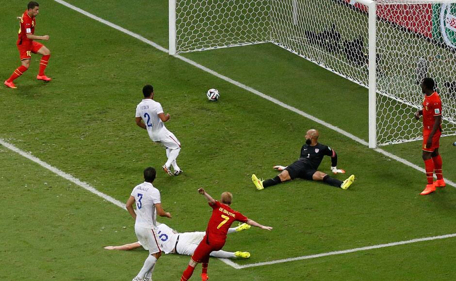 [caption id=“attachment_1598975” align=“alignleft” width=“940”]  In an intensely contested match, Belgium beat USA 2-1 to qualify for the quarterfinals of the FIFA World Cup. Kevin de Bruyne and Romelu Lukaku scored in the extra time to send the Belgium fans into a frenzy at at the Arena Fonte Nova, Salvador. Romelu Lukaku celebrates with Kevin De Bruyne (R) after scoring a goal. Reuters[/caption] [caption id=“attachment_1598969” align=“alignleft” width=“940”]  U.S. President Barack Obama was all pumped up for the big clash. Here he leads a chant of “I believe that we will win” as he arrives at a viewing party of the World Cup match between the U.S. and Belgium, in an auditorium at the Eisenhower Executive Office Building in Washington. Reuters[/caption] [caption id=“attachment_1598957” align=“alignleft” width=“940”]  Belgium’s Marouane Fellaini kicks the ball near Jermaine Jones of the U.S. Belgium started off on a positive note and dominated the first half but unfortunately, they went into the break without scoring. Reuters[/caption] [caption id=“attachment_1598959” align=“alignleft” width=“940”]  Belgium’s Divock Origi throws himself into the goal net, behind goalkeeper Tim Howard of the U.S, after missing an opportunity to score a goal. Origi was a constant threat to the USA defense as he combined well with Edin Hazard to create chances. Two of his shots were saved by Tim Howard while one of his headers hit the crossbar. Reuters[/caption] [caption id=“attachment_1598977” align=“alignleft” width=“940”]  Goalkeeper Tim Howard was the hero of the match for USA as he single-handedly kept his team in the match. He made a staggering 15 saves, more than any other player in a single game in the World Cup since 1966. Reuters[/caption] [caption id=“attachment_1598965” align=“alignleft” width=“940”]  A brave defense and heroic performance from Howard meant that USA somehow made it to the extra time. But soon after, Kevin De Bruyne (7) broke the deadlock as he latched onto a loose ball and shot it into the far corner to give Belgium the lead. Reuters[/caption] [caption id=“attachment_1598973” align=“alignleft” width=“940”]  Belgium’s Kevin De Bruyne forms a heart shape with his hands as his teammates gather around him to celebrate his goal. Reuters[/caption] [caption id=“attachment_1598963” align=“alignleft” width=“940”]  Romelu Lukaku replaced Divock Origi going into the extra time and the substitution proved to be inspirational. He played a part in Belgium’s first goal and then scored the second goal to make it 2-0 in the 105th minute. Reuters[/caption] [caption id=“attachment_1598961” align=“alignleft” width=“940”]  Just when it seemed it was all over for the USA, Julian Bradley provided a twist in the tale as he pulled one back via a stunning volley. It was his first ever touch of the ball in World Cup. Reuters[/caption] [caption id=“attachment_1598967” align=“alignleft” width=“940”]  USA upped the ante in search of an equaliser. Clint Dempsey and Jermaine Jones had chances to take it to penalties but they scuffed their chances. Belgium fans rejoiced as they made it to the quarterfinals for the first time in 28 years. Reuters[/caption]