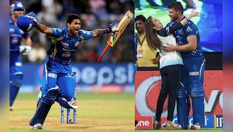 Aditya Tare of the Mumbai Indians celebrates after hitting the winning six against Rajasthan Royals. Mumbai Indians owner Neeta Ambani hugs Corey Anderson after the victory. PTI[/caption] [caption id=“attachment_1542151” align=“alignleft” width=“940”]
