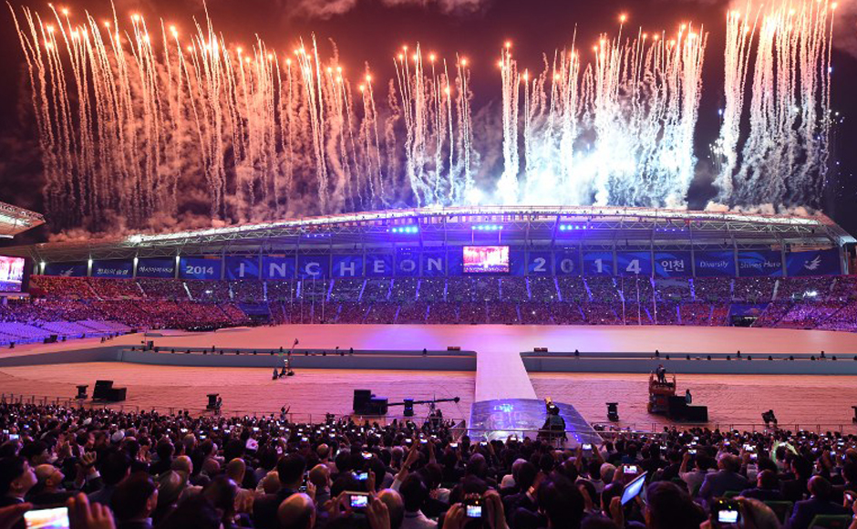 Fireworks illuminate the night sky during the opening ceremony of the 2014 Asian Games at the Incheon Asiad Main Stadium in Incheon. AFP