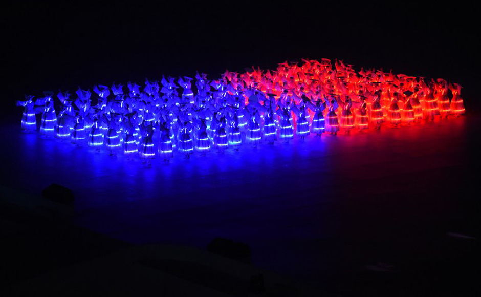As promised, the opening ceremony showcased Korea’s past and future using digital technology. Dancers perform during the opening ceremony of the 2014 Asian Games at the Incheon Asiad Main Stadium in Incheon. AFP