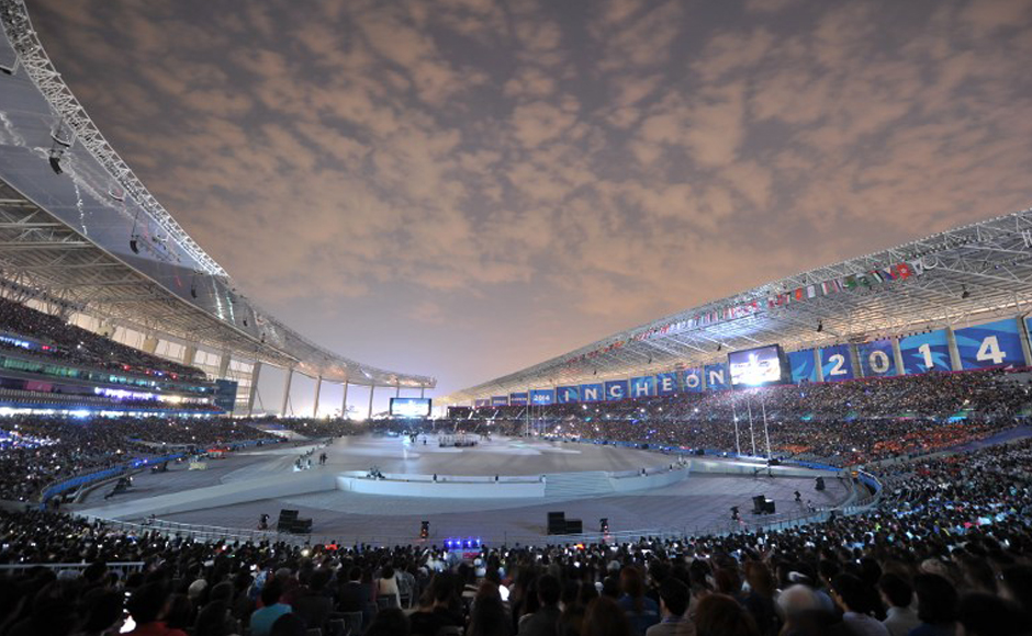 A Stunning view of the opening ceremony of the 2014 Asian Games at the Incheon Asiad Main Stadium in Incheon. AFP