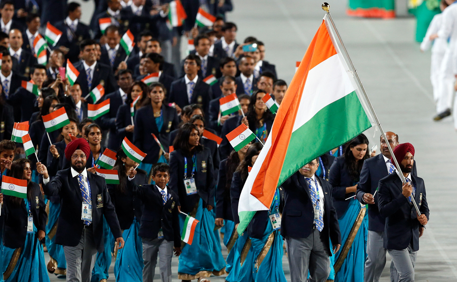 Flag bearer of India Sardar Singh leads the team into the Opening Ceremony of the 17th Asian Games in Incheon. Reuters