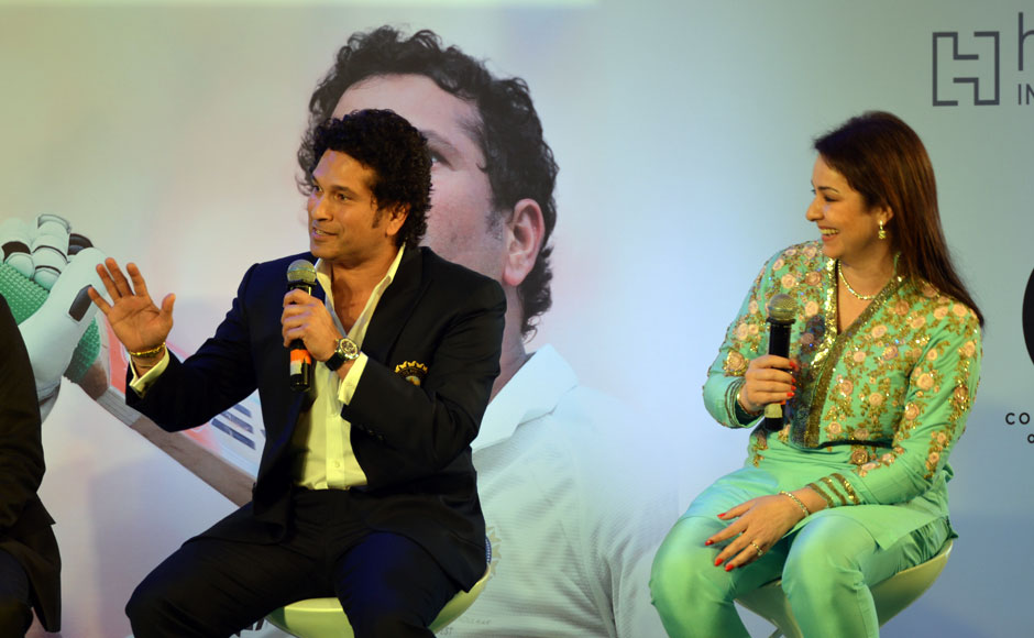 Wife Anjali sees the humourous side of a point Sachin Tendulkar made while lauching the book. Jigar Mehta/Firstpost