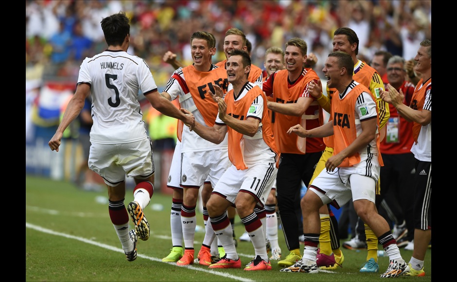 Germany’s Mats Hummels celebrates after scoring a goal. Reuters