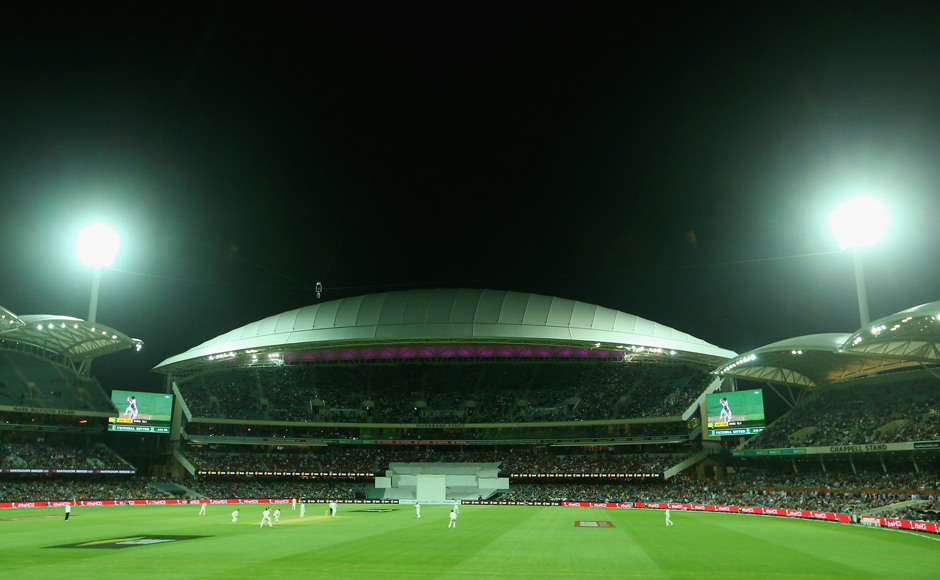 A general view of play under lights during day one of the Third Test match between Australia and New Zealand at Adelaide Oval on November 27, 2015 in Adelaide, Australia. Getty