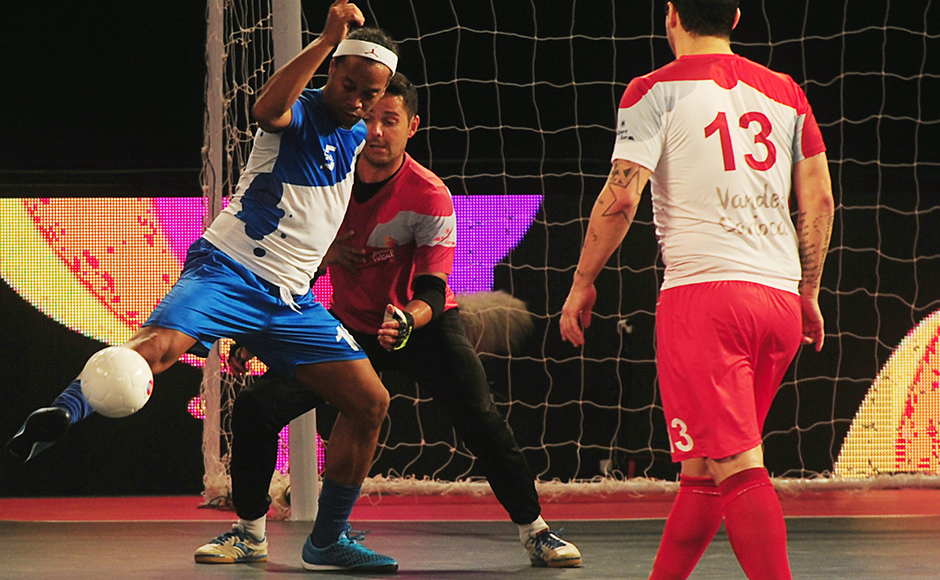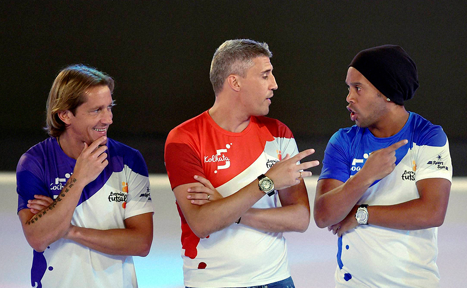 Former Brazilian footballer Ronaldhino during the inaugural session of Premier Futsal. PTI