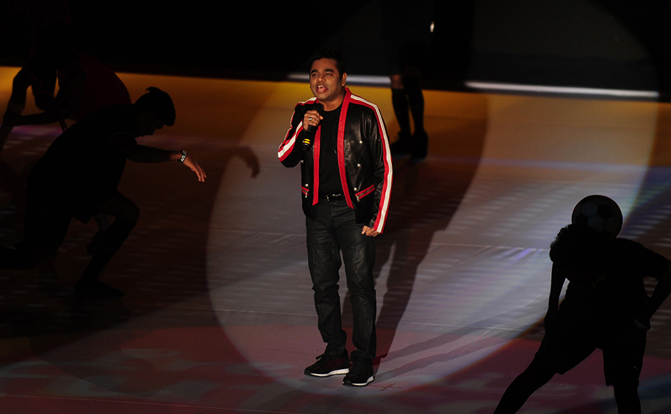AR Rahaman, who has also composed the anthem for the league, performs during the opening ceremony of Premier Futsal. AFP