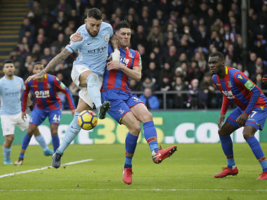 London: Ederson stopped Luka Milivojevic’s late penalty to save Manchester City from defeat on Sunday but a 0-0 draw at Crystal Palace brought the Premier League leaders’ record-breaking 18 match winning run to an end. Milivojevic was presented with the chance to seal a memorable victory for Roy Hodgson’s relegation-threatened side when Wilfried Zaha was brought down by Raheem Sterling in the 90th minute. But the Palace winger struck his spot-kick too close to Ederson, allowing the City keeper to preserve his side’s 21-game unbeaten start to the league campaign. [caption id=“attachment_4282767” align=“alignleft” width=“380”] Manchester City’s Nicolas Otamendi(L) competes for the ball with Crystal Palace’s Martin Kelly. AP[/caption] However, City’s failure to score in a league game for the first time since last April meant they fell short in their bid to equal Bayern Munich 19-game winning run of four years ago, the longest in Europe’s five major leagues. And City’s afternoon was further soured when Kevin De Bruyne was stretchered off with what appeared to be a serious looking injury immediately after the spot-kick following an ugly challenge by Palace substitute Jason Puncheon. Hodgson claimed before the game there was “no magic formula” to competing with City, insisting his Palace side’s hopes of getting something from the game hinged on working hard, and defending well while maintaining an attacking threat. The manager could be satisfied that during the opening 45 minutes his players stuck to the prescribed plan to the extent that by the half-time break, the frustration among Guardiola’s players was plain to see. City had started well enough, piecing together a series of fluent early moves that suggested the home defence would face a long and testing afternoon. However, there was an early sign the visitors might not be at their best when a breakdown in communication between Eliaquim Mangala and Ederson led to the keeper directing an attempted clearance against his centre-back, presenting Christian Benteke with an early opportunity. Mangala recovered to deflect the striker’s shot away to safety but the mix-up was the first of too many for the league leaders during the first half. Both sides were forced into early changes with Palace captain Scott Dann being stretchered off after in the 19th minute and City striker Gabriel Jesus following shortly after with what appeared to be groin problem. Reshuffle The subsequent reshuffle appeared to affect the visitors more, with Palace growing more into the game the longer the half went on. Sergio Aguero, Jesus’s replacement, struck the post in the 28th minute with a deflected shot from the edge of the penalty area but that proved to be a rare moment of concern for home keeper Wayne Hennessey. And while Palace were unable to carve out many clear chances at the other end, Wilfried Zaha was a constant threat down the Palace left, frequently getting the better of City right-back Kyle Walker. An animated conversation between De Bruyne and Leroy Sane confirmed the sense that City were growing increasingly uncomfortable and Sane — who was particularly ineffective — received a yellow card on the stroke of half-time when he kicked the ball away in frustration after being caught offside. Palace had adopted a very different approach to that pursued by Newcastle, City previous opponents, before the break. But they found it far harder to be as expansive after the restart when City finally began to move through the gears. Benteke grew more isolated up front and Zaha found he had less space to work with as City pressed forward and began to give Hennessey the busy afternoon he would have anticipated. The keeper, though, proved up to the task and never more so that when he positioned himself well to block Sane’s close range volley at the far post. De Bruyne shot straight at Hennessey and then saw an effort blocked by Martin Kelly but, despite dominating possession, City struggled to find openings in a well-drilled Palace backline. And they should have entered the final 14 minutes of the game needing a goal to get back on level terms after Andros Townsend missed the home side’s best chance of the half before Milivojevic was handed his late chance to clinch the points.
