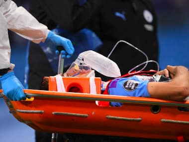 Manchester: Manchester City defender Eric Garcia was released from the hospital on Thursday after getting hurt in a collision with his own goalkeeper during the team’s 3-0 win over Arsenal in the Premier League. [caption id=“attachment_8498671” align=“alignleft” width=“380”]  Eric Garcia collided with goalkeeper Ederson Moraes near the Manchester City penalty box in the 80th minute. AP[/caption] Garcia was sent hard to the ground by Ederson Moraes as the goalkeeper came out of his penalty area to clear the ball in the 80th minute of Wednesday’s game at Etihad Stadium. The young Spanish defender was carried off on a stretcher after nearly 10 minutes of treatment by medical staff. City players appeared concerned — left back Benjamin Mendy put his jersey over his face and was unable to look — and manager Pep Guardiola said after the match he was a “little bit concerned.” City did not disclose the exact nature of Garcia’s injury, only saying he “will be monitored in the coming days ahead of a return to training and competitive action.”