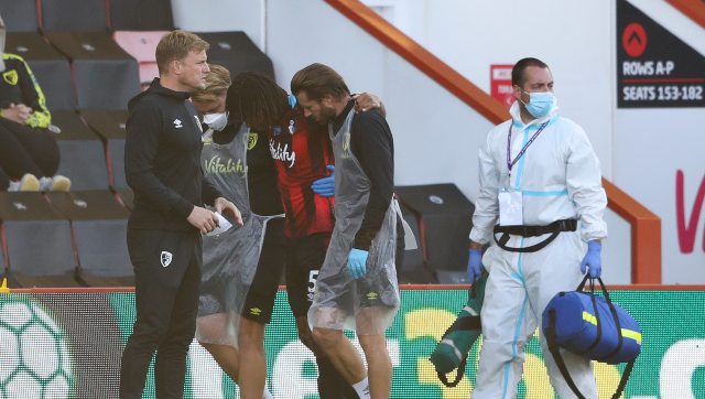 Bournemouth defender Nathan Ake is unlikely to feature in their three remaining Premier League games this season after picking up a knock in Sunday’s 4-1 win over Leicester City, manager Eddie Howe said. The centre back, who started 29 league matches this season, was taken off after 40 minutes after sustaining an injury while tackling Jamie Vardy. “It doesn’t look too good. With such a short time left of the season, it looks like it’s going to be difficult for him to play,” Howe told Sky Sports. [caption id=“attachment_8590491” align=“alignnone” width=“640”]