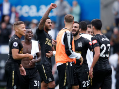 Swansea: Jamaal Lascelles provided a welcome tonic for ailing Newcastle United manager Rafael Benitez as his late goal secured a 1-0 win at Swansea City on Sunday. Benitez was forced to miss his side’s trip to south Wales while he recovered from an infection. [caption id=“attachment_4029911” align=“alignleft” width=“380”] Newcastle United’s Jamaal Lascelles and teammates celebrate after the match. Reuters[/caption] The 57-year-old Spaniard had an operation on Monday to address an infection resulting from an earlier hernia operation and was unable to recover in time to travel with his squad. But Benitez’s absence didn’t affect Newcastle’s players and captain Lascelles boosted the former Liverpool manager’s spirits with his headed winner in the closing stages at the Liberty Stadium. Newcastle’s second win lifted them into mid-table, providing Benitez with hope they can avoid relegation despite their lack of top-class signings since last season’s promotion. They were fortunate to finish with 11 men after Matt Ritchie escaped a red card for the sort of high foot just after half-time on Alfie Mawson which saw Sadio Mane sent off for Liverpool at Manchester City on Saturday. Newcastle went close after 33 minutes when Ritchie’s cross was met by the head of Joselu and Lukasz Fabianski sprang to his left to pull off a fantastic one-handed save. Swansea threatened when Isaac Hayden lost out to Tammy Abraham and the ball ran to Jordan Ayew, whose 20-yard shot forced Rob Elliot to parry wide. Swansea should have taken the lead on the hour mark when Leroy Fer released Abraham and the striker rounded Elliot for what looked a simple finish. But Lascelles stretched to block and the Newcastle fans behind the goal celebrated as if they had taken the lead. They almost did go in front when Ayoze Perez forced Fabianski into saving with his outstretched leg. Swansea were not let off the hook and Lascelles rose majestically to head home from close range in the 76th minute. Elliot protected the three points with a fine late stop from Swansea substitute Luciano Narsingh.