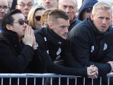 Leicester City players will wear shirts with club owner Vichai Srivaddhanaprabha’s name embroidered on them when they play their first home match since the Thai tycoon was killed in a helicopter crash, the Premier League club said. [caption id=“attachment_5496151” align=“alignleft” width=“380”] Khun Aiyawatt Srivaddhanaprabha, son of Leicester City’s owner Thai businessman Vichai Srivaddhanaprabha, Jamie Vardy and Kasper Schmeichel look at tributes left for Vichai. Reuters[/caption] Vichai was one of five killed in the crash near the King Power Stadium after Leicester’s last home league match on 27 October. Leicester said they will pay tribute to Vichai with a video presentation when they host Burnley in the league on Saturday, while supporters have also planned a march to the venue. Both teams will wear black armbands during the game, with a two-minute silence to be observed before the kick off, while Leicester’s players will wear the tribute shirts in the first half and shirts with a poppy emblem for the second to commemorate Remembrance Sunday. “The Srivaddhanaprabha family and everyone at Leicester City Football Club have been deeply moved by the remarkable volume of generous and thoughtful tributes left at King Power Stadium,” the club said in a statement. “The support of our fans, our community and the football world during this darkest of weeks will never be forgotten.”