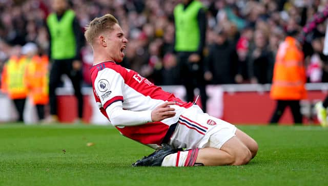 West Ham beat Liverpool 3-2 on Sunday to end the Reds’ 25-match unbeaten run as struggling Aston Villa fired manager Dean Smith on a day of high drama in the Premier League. Jurgen Klopp’s Liverpool side were one game away from setting a new club record of 26 games unbeaten in all competitions but three costly errors from goalkeeper Alisson Becker cost them dear. Elsewhere in the English top flight, Antonio Conte had a taste of the scale of his task at new club Tottenham as they laboured to a 0-0 draw at Everton. Liverpool travelled to the London Stadium without a defeat in the league since March but they left frustrated as West Ham leapfrogged them into third spot in the table. It was a day to forget for Brazilian goalkeeper Alisson, whose own goal put West Ham ahead in the first half. Trent Alexander-Arnold equalised with a brilliant free-kick, but Alisson was at fault again as Pablo Fornals and Kurt Zouma struck for the Hammers after half-time. Divock Origi got one back for Liverpool, but it was not enough to preserve their long unbeaten streak. “It’s been hard to beat Liverpool over my career, they’ve been a very good side, so I was very pleased to get it today,” West Ham manager David Moyes told the BBC. “Even when it went to 3-1 it was never comfortable. Liverpool were very good and we had to work hard to keep them out.” Klopp said key moments went against his team. “We were not that calm in the decisive moments… we were not patient enough,” he told Sky Sports. “We can be better, 100 percent. You cannot always play your best result, you have to grind out a result but they scored three goals and we didn’t.” Spurs stalemate Spurs sacked Nuno Espirito Santo last week after five defeats in seven Premier League matches and turned to Conte, who has won league titles with Juventus, Chelsea and Inter Milan. A game short on clear-cut chances could easily have ended in another league defeat for the visitors but for an intervention from VAR to overturn the decision to award Everton a second-half penalty. Rafael Benitez’s side thought they had won a spot-kick after Spurs goalkeeper Hugo Lloris dived at the feet of Richarlison and clipped the Brazilian. But after a VAR review referee Chris Kavanagh overturned his original decision on the basis that Lloris got enough of a touch on the ball. Mason Holgate was sent off for the home side in stoppage time but it was too late for Spurs to take advantage. Conte can point to a first clean sheet in the league since August as a sign of progress but Tottenham’s struggle to score goes on, with Harry Kane still stuck on one goal in the Premier League this season. “Today I saw the heart of my players, the passion, the will to fight, the will to sacrifice, to understand this was a very difficult moment for us and to see this makes me more confident for the future,” said the Italian. Mikel Arteta celebrated his 100th game as Arsenal manager with a 1-0 victory against 10-man Watford, courtesy of a goal from Emile Smith Rowe. [caption id=“attachment_10118631” align=“alignnone” width=“640”]  Arsenal’s Emile Smith Rowe celebrates scoring during the English Premier League soccer match between Arsenal and Watford at the Emirates Stadium. AP[/caption] Leeds and Leicester shared the spoils in a 1-1 draw after a stunner from Harvey Barnes cancelled out Raphinha’s opener. Earlier, Villa announced they had sacked manager Smith after five straight Premier League defeats — less than 24 hours after bottom club Norwich dismissed their boss, Daniel Farke. The former European champions are now 16th in the Premier League table after picking up just 10 points from their opening 11 games. “This year we have not seen the continuous improvement in results, performances and league position which we have all been looking for,” Villa chief executive Christian Purslow said in a statement on the club’s website. Smith is the fifth managerial casualty in the Premier League this season.