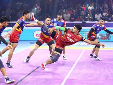 At the start of October in the Pro Kabaddi 2019 season, Pawan Sehrawat had accumulated a staggering 39 raid points in Bengaluru Bulls’ win over Haryana Steelers. He thus broke Pardeep Narwal’s four year old record for most raid points in a single game. It also booked their place in the playoffs. [caption id=“attachment_7498641” align=“alignleft” width=“380”]  Pawan Sehrawat picked up 20 points in Bengaluru Bulls’ miraculous win over UP Yoddha in Pro Kabaddi 2019.[/caption] On Monday, he couldn’t replicate that high-scoring success against UP Yoddha but he produced a mind-boggling level of kabaddi to steer his side into the semi-final. His 20 points, with Bengaluru playing catch up for a lion’s portion of the game, ensured a 48-45 win. It was the first instance of extra time in seven seasons of the Pro Kabaddi league. Bengaluru trailed UP Yoddha by as many as 11 points at one stage in the match and looked down and out from the first Eliminator. But Sehrawat was boosted by the crowd’s volume and found mental support from coach Randhir Singh and teammate Rohit Kumar who came on as a substitute. Kumar, who had been out injured for five matches, contributed with just three points but as Sehrawat admitted later, he was crucial in egging his fellow raider on. “My confidence level was completely down. I was getting tackled multiple times. So even though I was feeling low, coach sir kept reminding me that you will make the difference and you will get the win. Rohit also motivated me and told me that even if I was getting tackled, I need to forget that. I would like to credit the coach and Rohit for this performance,” Sehrawat said after the win. “I was so down that I kept saying ‘coach saab match haar gaye! match haar hi gaye hain’ [we’ve lost, we’ve already lost]. Rohit kept reminding me that nothing is lost. This gap is only nine or ten points. We’ve comeback from much bigger margins. And it is true - last season we drew back from 16 or 17 points down. It didn’t help that my ankle was hurting as well,” he added. Bengaluru played catch up from the word go and couldn’t take the lead until the second half with three minutes left on the clock. That is when Pawan stitched a two point raid to put the defending champions 36-34 in the clear. The journey to that point in the match was riddled with hard work, nerves and instances where Sehrawat had given up. He admitted that he was downbeat throughout. Away from Pawan’s dominance at the packed EKA Arena in Ahmedabad, UP Yoddha had contribution from multiple sources. Rishank Devadiga was their top raider with 11 points; Nitesh Kumar and Sumit emerged as the top defenders with five tackle points each. Shrikant Jadhav collected nine points to take his tally in the season past 150 points. But, it all came to nought. With game slipping away from their grasp, Sehrawat got the comeback job underway with a massive raid to reduce the deficit to four points at 15-19 in the first half. He got one touch and went for the other defender as well in trying to accumulate as many points. But this fishing attempt almost resulted in an unsuccessful raid but for the Bulls skipper’s perseverance to keep going, keep battling and as soon as he touched the midline, he fell flat in exhaustion. The crowd, however, was on hand to go nuts and push Sehrawat to keep going. [caption id=“attachment_7498631” align=“alignnone” width=“825”]  Pawan Sehrawat was Bengaluru Bulls’ star performer in the win against UP Yoddha.[/caption] In the second half, Bengaluru once again continued to play catch up and cut the gap to just one before UP Yoddha pulled away again. Monu Goyat’s raid and tackle combination in succession coupled with Rishank’s successful raid and Nitesh’s super tackle allowed Yoddha to go 31-25 ahead. With four minutes to go into the game, Bengaluru trailed 28-34 and a timeout was called. Sehrawat got the proceedings underway with a diving raid for a Super 10 and an All Out to make it 33-34. On the next piece of action, Saurabh Nandal tackled Shrikant to bring parity at 34-34. With nothing separating the two sides at 36-36 and 40 minutes of regulation time, the teams headed to extra time. The first instance of time added on saw six minutes of action where two halves were played of three minutes each. The rules further stipulated that in case of a no winner after the extra time as well, the game would be decided on golden raids. If there was no decision after that as well, the winner would have been decided by, surprisingly, a coin toss. Albeit it didn’t come to that - much to everyone’s relief for this was dramatic enough. If the first 40 minutes were not enthralling enough, the extra time was equally edge-of-the-seat-stuff. In the first part of extra time, UP Yoddha drew first blood with Rishank’s successful raid and Sumit’s equally smart tackle. But Bulls recovered to make 38-39 at the change of ends. “During the minute’s break in extra time, I told him to attack the left corner. I was noticing that the player was not patient in defence and was likely to make a mistake and you will win a point there,” said Bengaluru coach Randhir Singh on the pep talk during the extra time. Trailing by 39-40, Sehrawat achieved what was arguably the biggest raid of the match and the season. He popped into the UP half and in his confident manner, came back with a Super Raid with Sumit, Nitesh, Devadiga and Amit his victims. To make it doubly interesting, UP players reviewed and reckoned the raid was worth two points. However, the decision stood and saw Bengaluru go 43-40 up. Devadiga later acknowledged this was the difference maker. [caption id=“attachment_7498941” align=“alignnone” width=“825”]  Pawan Sehrawat was a handful throughout for UP Yoddha’s defence.[/caption] Goyat’s successful raid earned a bonus point and UP were still trying to remain in it with one point. But those hopes were dashed 