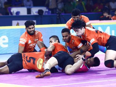 File image of U Mumba players in action against Jaipur Pink Panthers. Twitter@U_Mumba[/caption] Following their hard-fought loss against Haryana Steelers, Puneri Paltan have the perfect opportunity to leave Bengaluru with some momentum, as they battle Maharashtra rivals U Mumba in what promises to be a high-octane derby. Nitin Tomar showed glimpses of what he is capable of doing when in full flight in their last encounter. Coach Anup Kumar will be hoping Tomar can find more consistency and support Manjeet, who’s been their leading raid points scorer this season and is also capable of contributing in defence. Pankaj Mohite is another raider who has had his moments this year and can play a role against U Mumba. In defence, skipper Surjeet Singh has found form and led well in the last few games, but he requires a bit more help from his teammates. Balasaheb Jadhav, Sagar Krishna and Girish Ernak haven’t enjoyed the best of outings recently and will need to up their game against a potent U Mumba raid force.